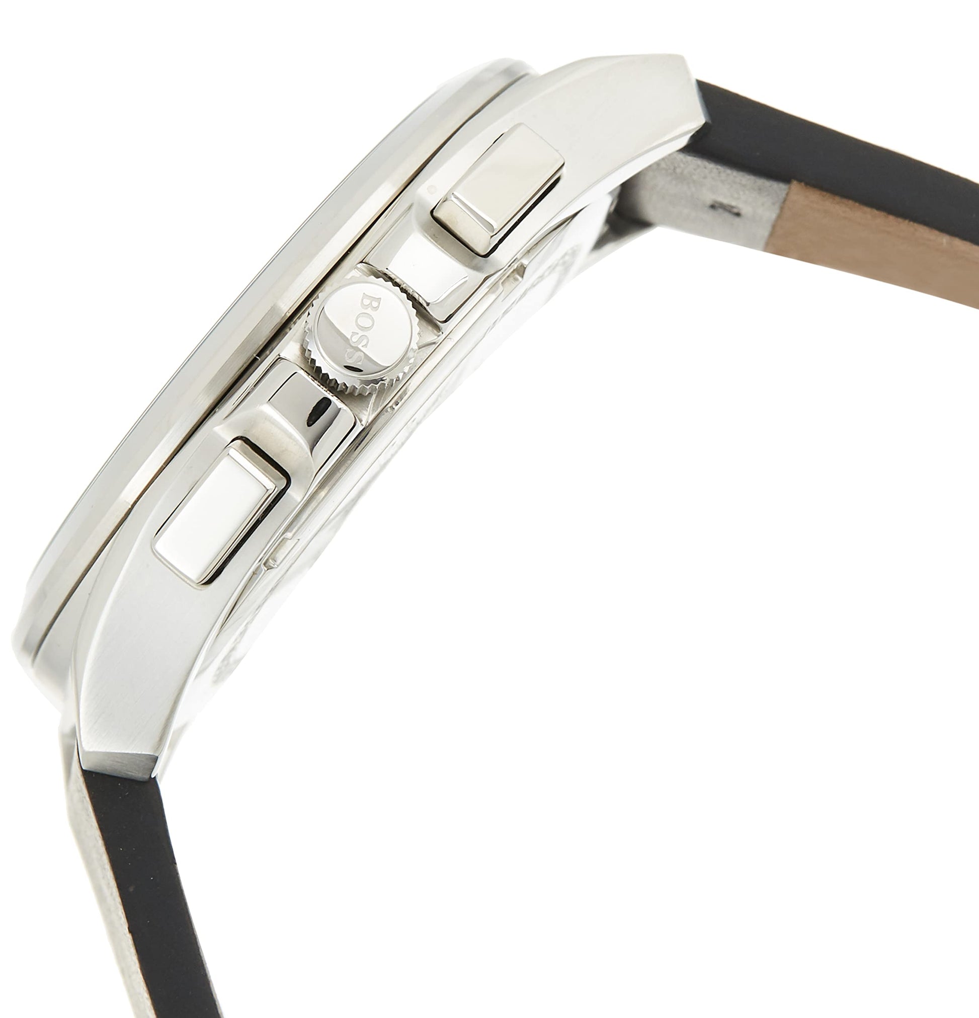 BOSS Hugo Leather Grandmaster Analog Black Dial Men Watch-1513881, Black Band