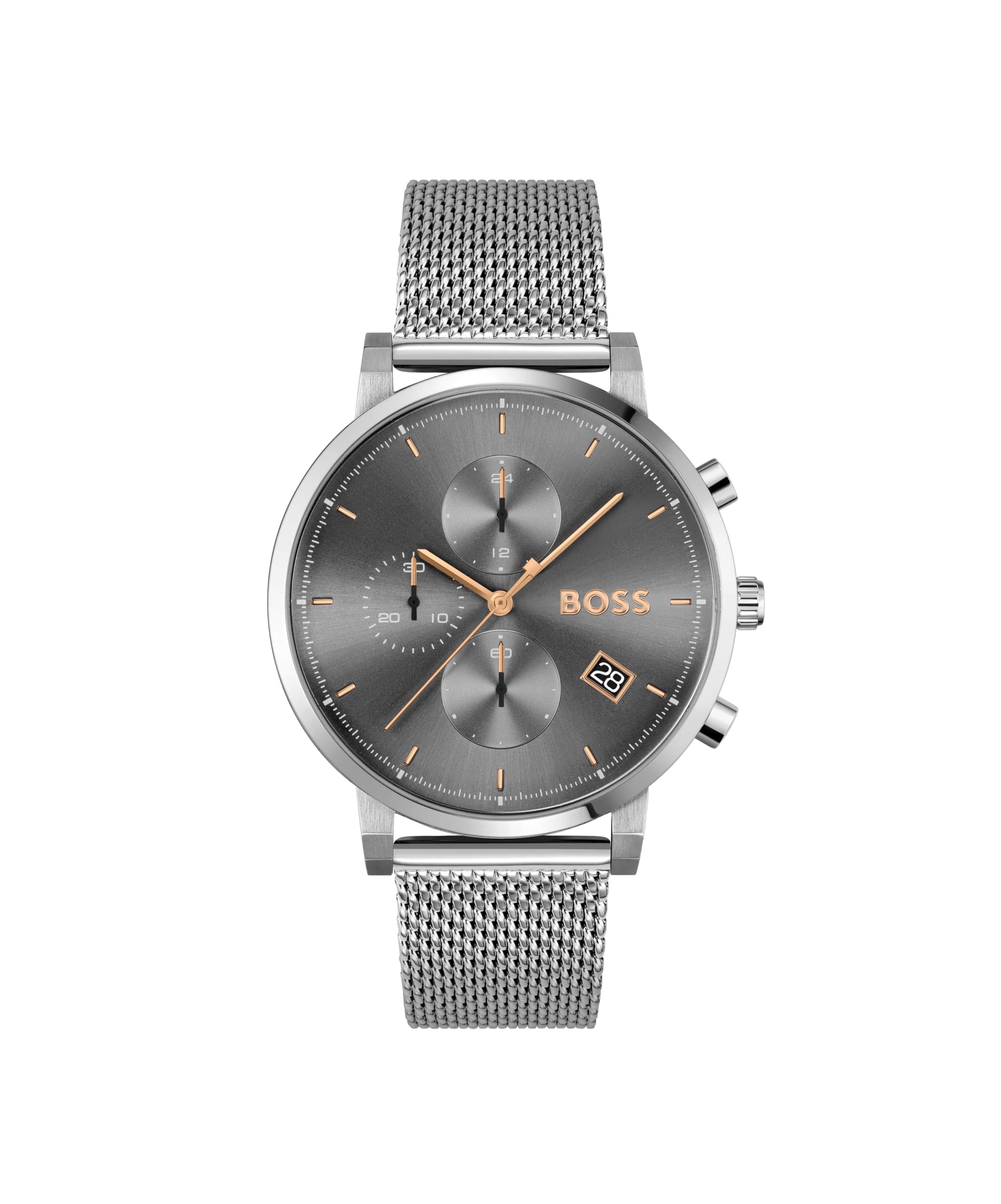 BOSS Hugo Stainless Steel Analog Grey Dial Men Watch-1513807, Silver Band