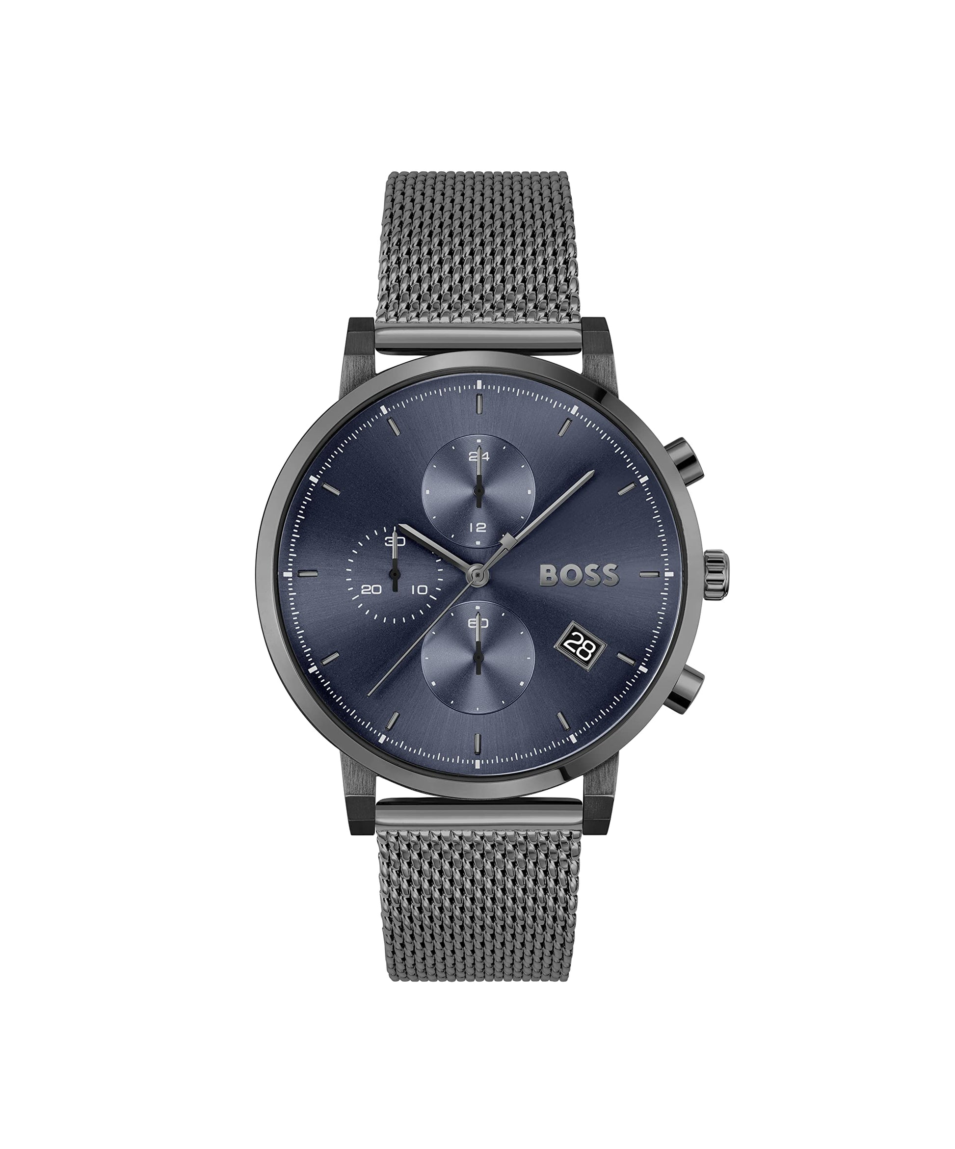 BOSS Integrity Qtz Fashion Chrono Blue Round Dial Men's Watch|Ionic Plated Grey Steel Material|Grey Color Band - 1513934