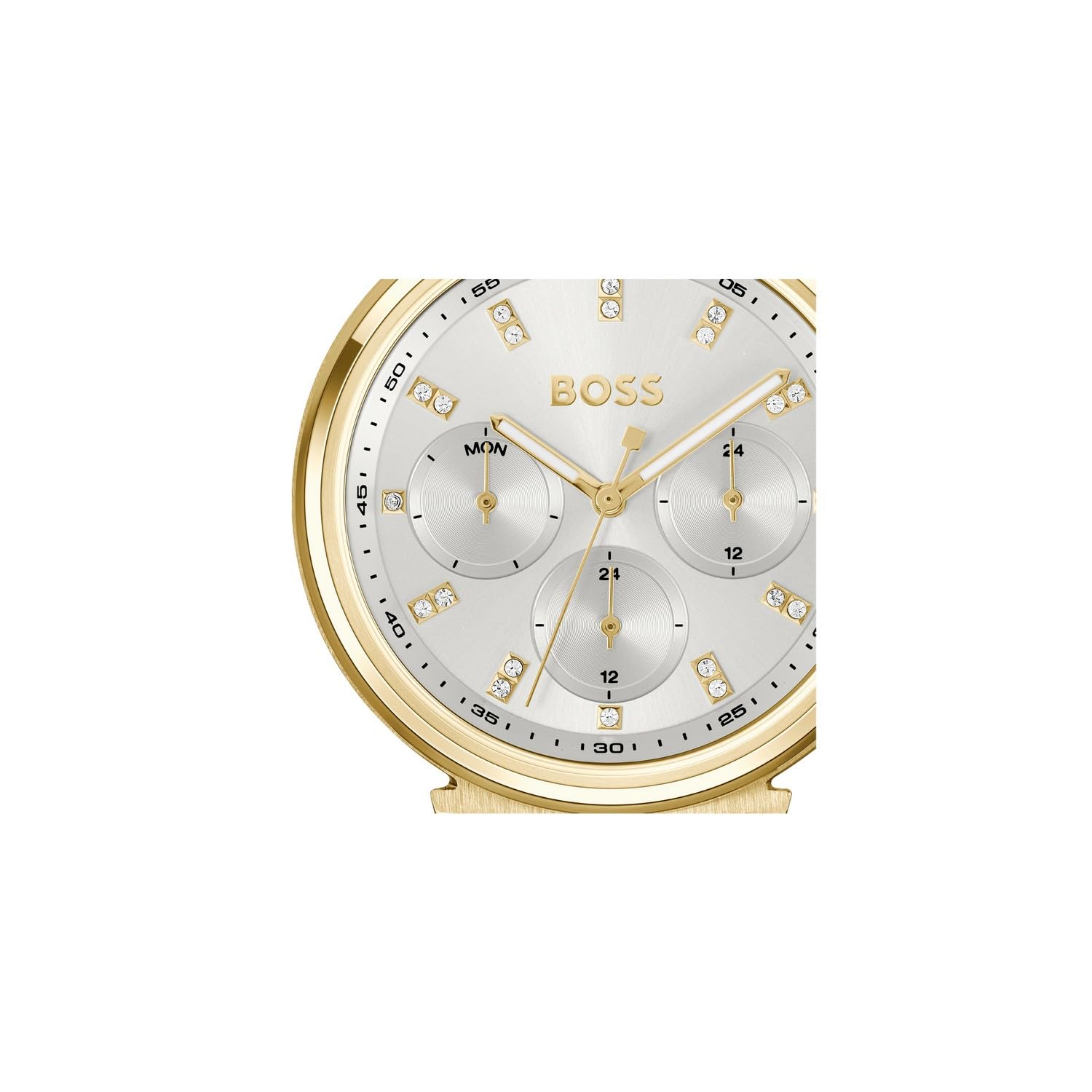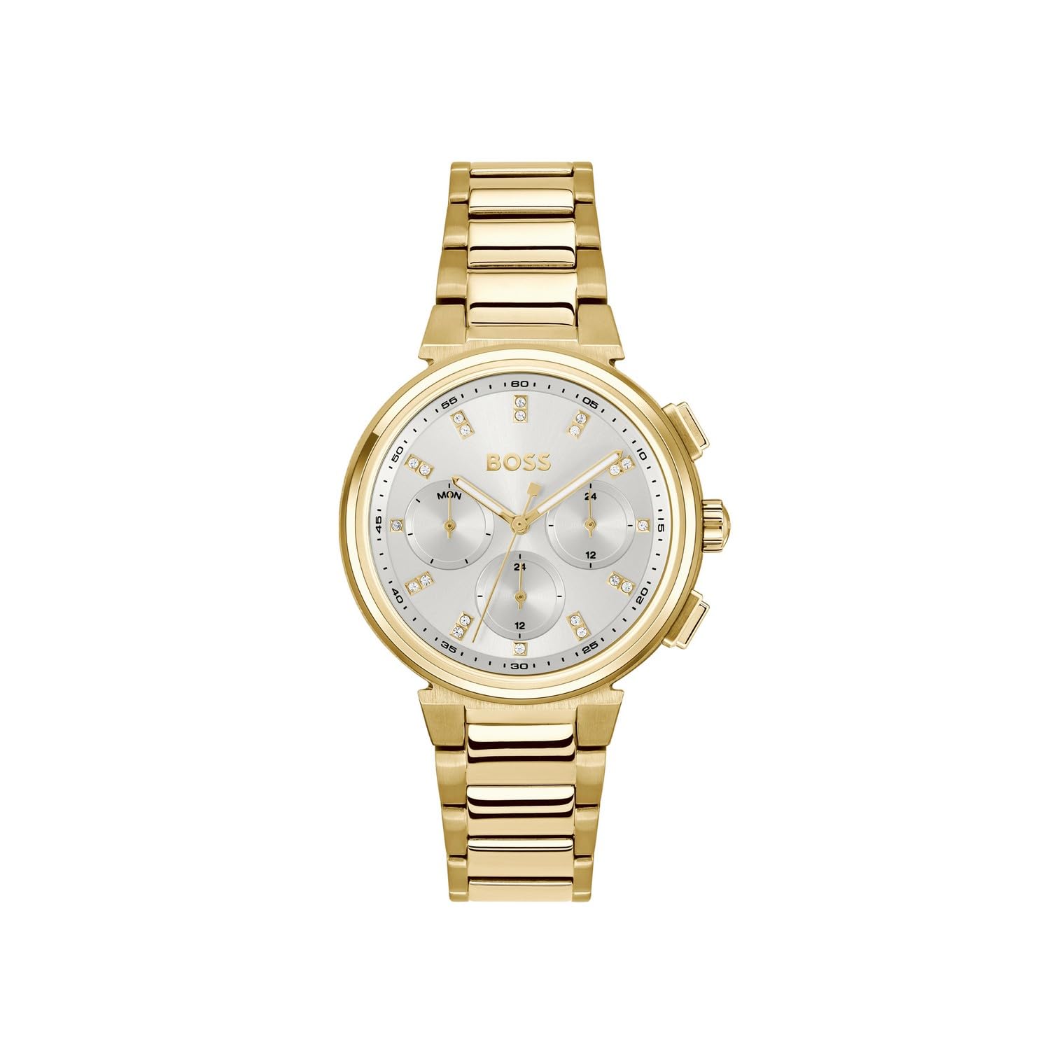 BOSS One Qtz Multifunction Silver White Round Dial Women's Watch|Ionic Plated Thin Gold Steel Material|Gold Color Band - 1502807