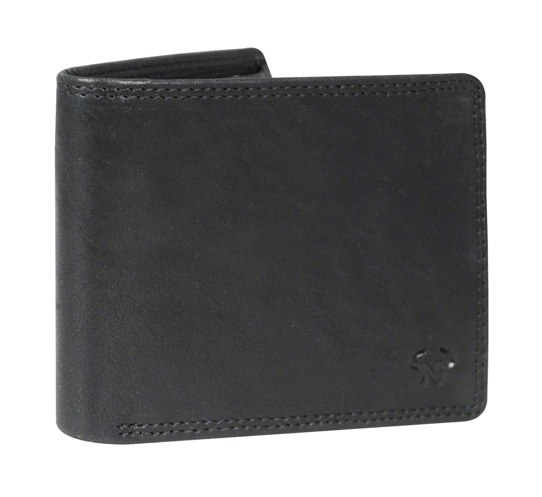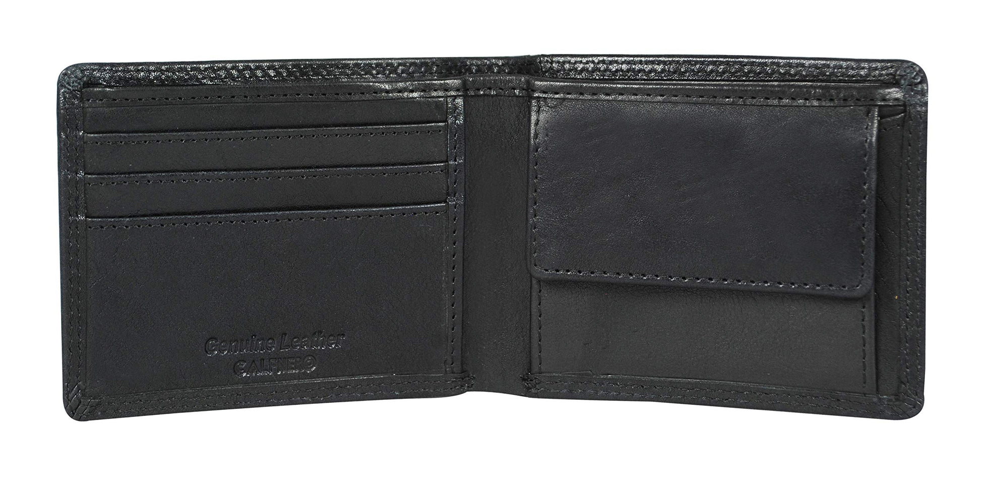 Calfnero Men's Genuine Leather Wallet with Multiple Card Slots and ID Window- Leather Wallet (Black) (Black)