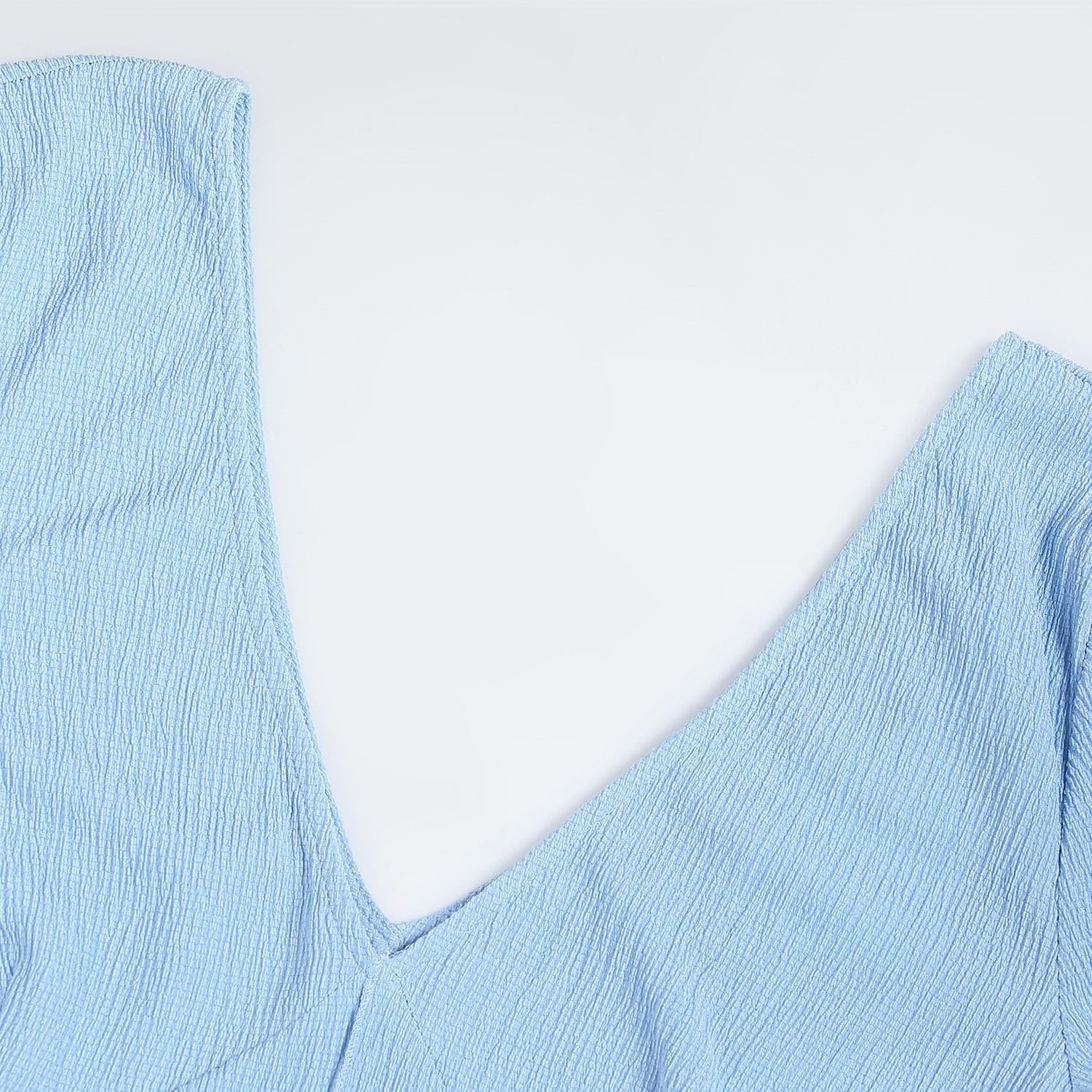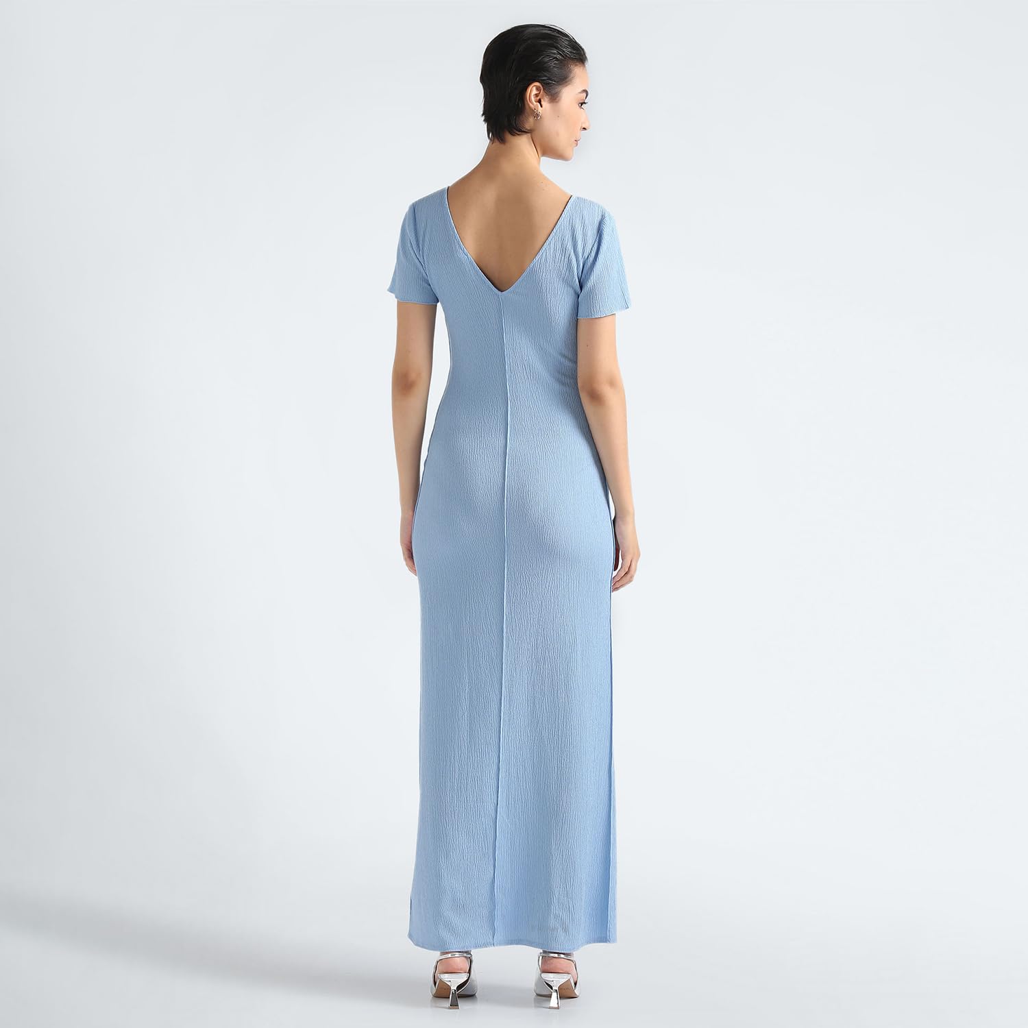 Calvin Klein Polyester Blue Solid V Neck Short Sleeves Women Crinkle Maxi Dress (S)