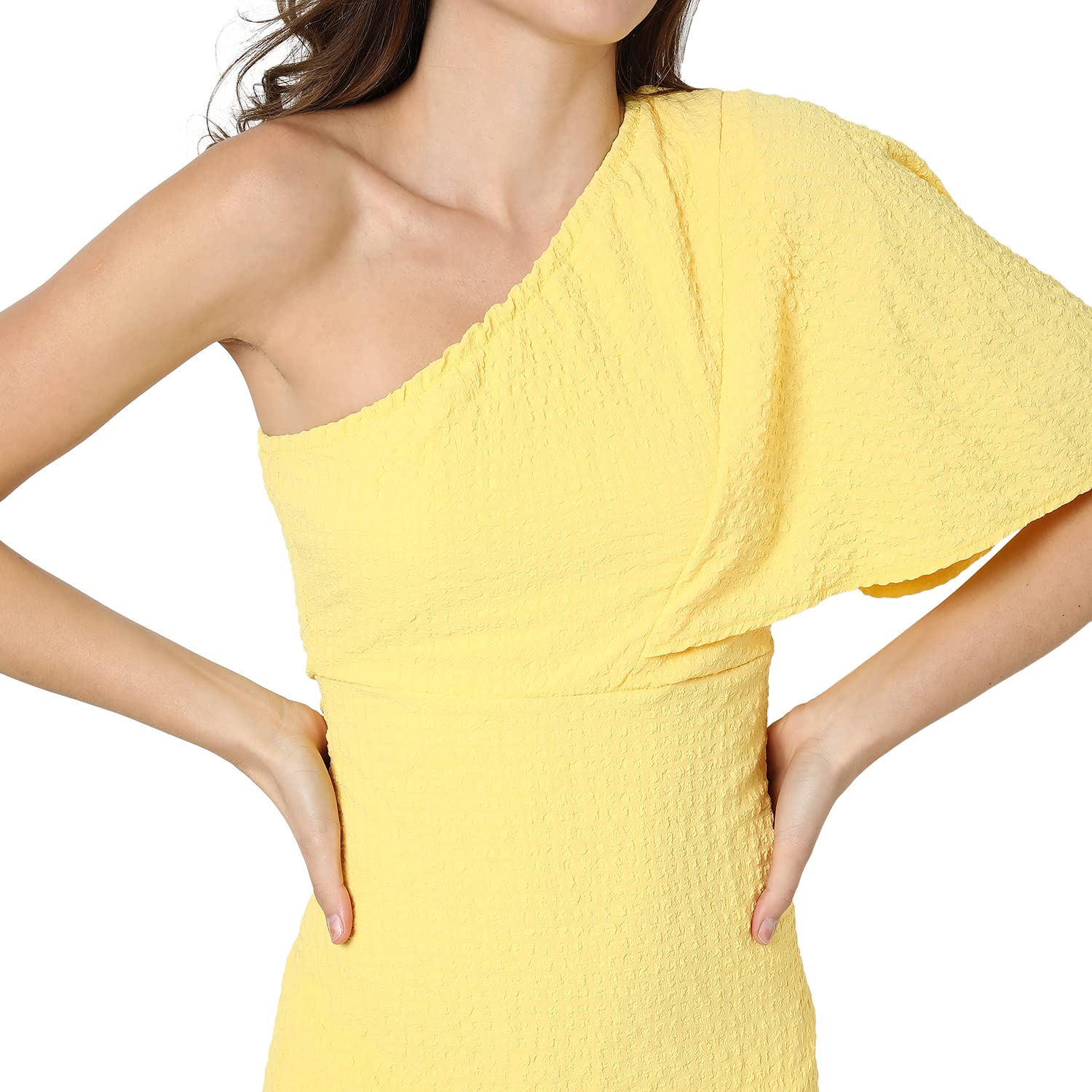 Campus Sutra Women Solid Design Stylish One Shoulder Casual Dresses(SSMR22_CSWSSDR5085_L) Yellow