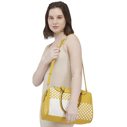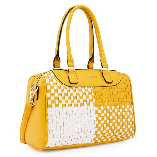 Caprese Aria Satchel, Medium Dual Colored-Mustard | Chic & Stylish Woven Handbag for Women with Secure Top Zip | Perfect for Office & Daily Essentials