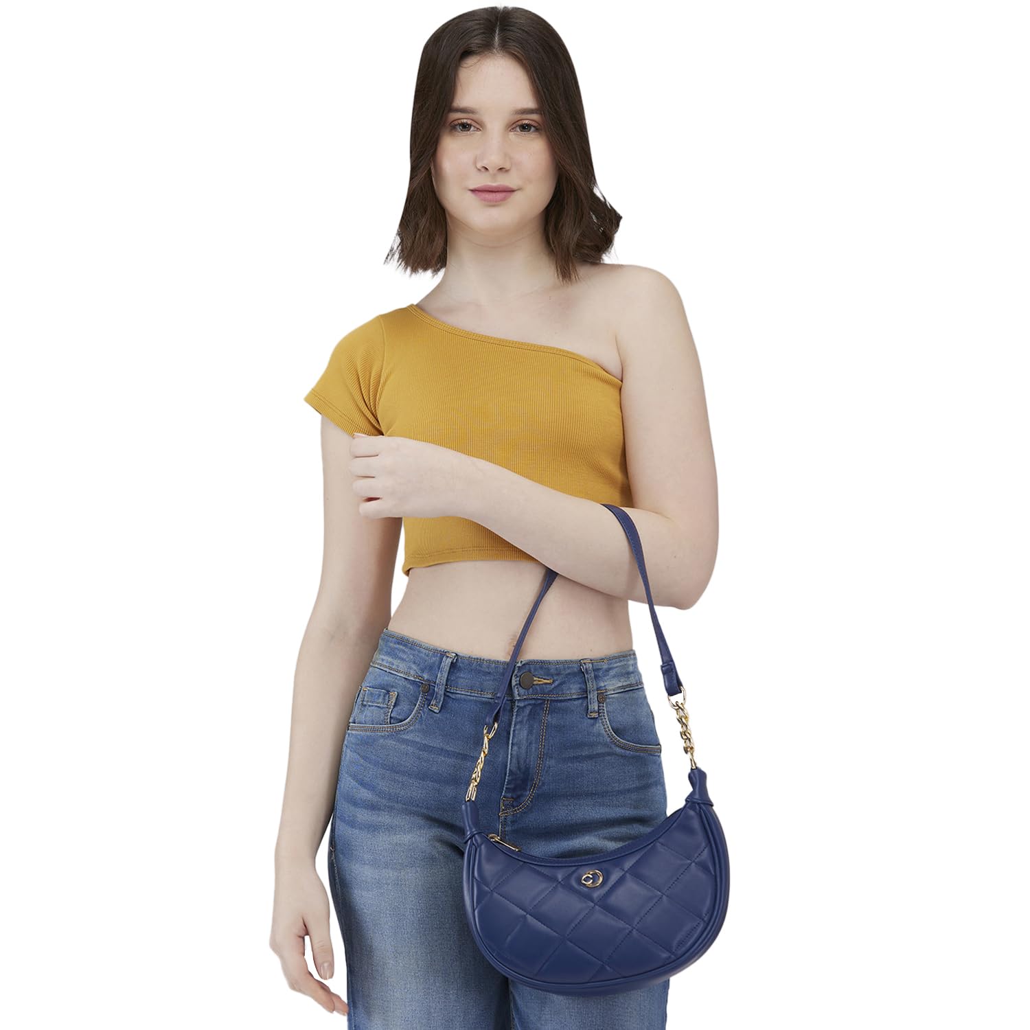 The Charlot Baguette Medium Navy Women's Handbag is a stylish fusion of fashion and functionality. With its medium size and trendy design, this handbag offers the perfect blend of practicality and style. The solid color is a bold statement and eye-catching to your ensemble, making it a standout accessory for any occasion. Whether you're exploring the city streets or heading out for a fun evening, the Charlot Baguatte ensures you do so in style while keeping your essentials organized and easily accessible. Upgrade your everyday look with this chic and versatile handbag that effortlessly combines fashion-forward aesthetics with practical utility.