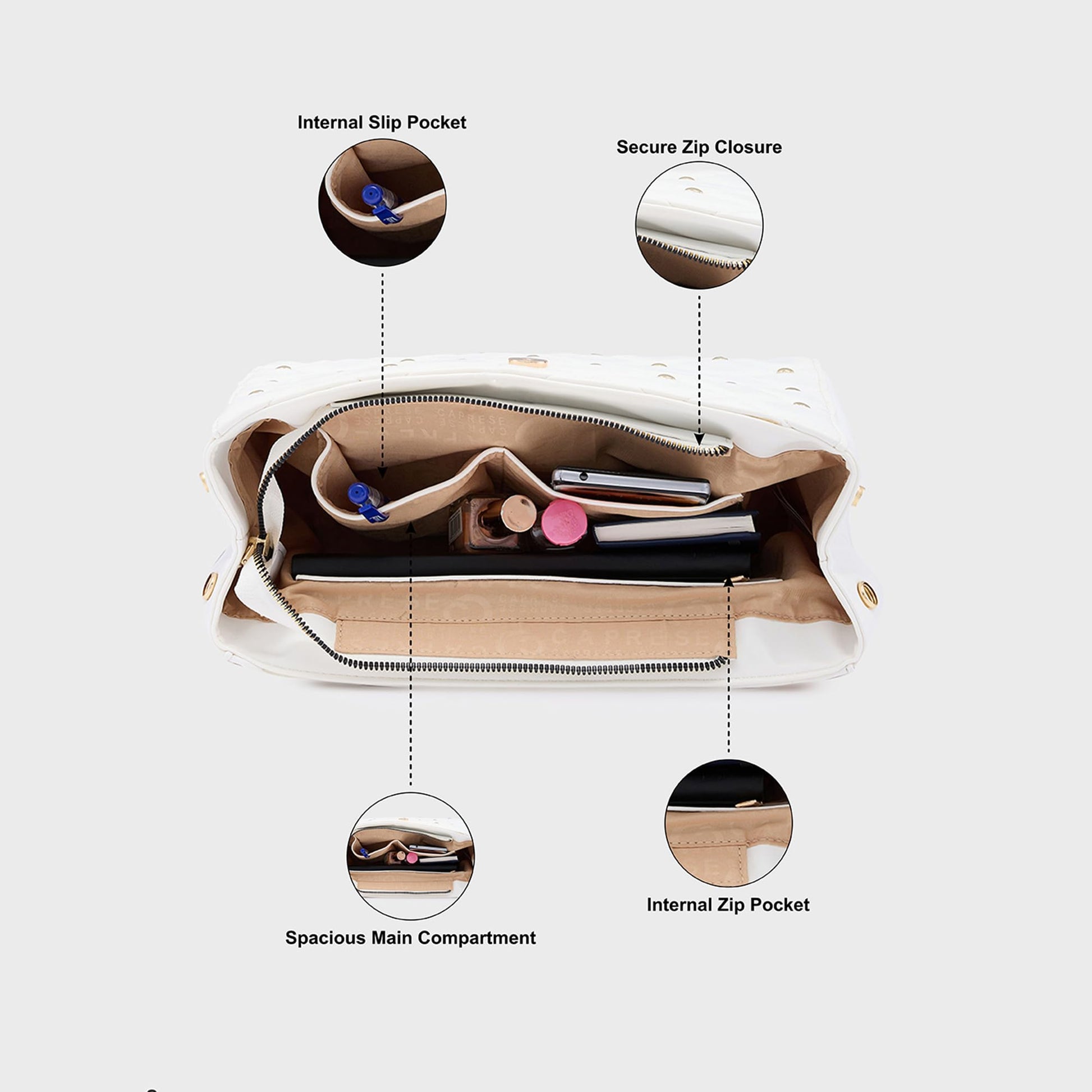 Caprese Cheryl Satchel Bag, Large | Stylish Quilted Handbag for Women with Multiple Compartments & Adjustable & Detachable Sling Strap | Secure Zip Closure| Perfect for Casual & Daily Essentials