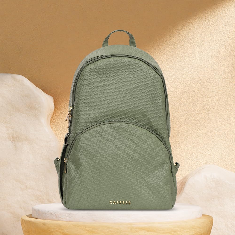 Caprese Comet Casual Backpack, Medium | Fashion Backpack for Women with Adjustable Strap & Secure Zip Closure | Spacious,Versatile for Daily Use, Ideal for Students, Professionals & Travelers (Olive)