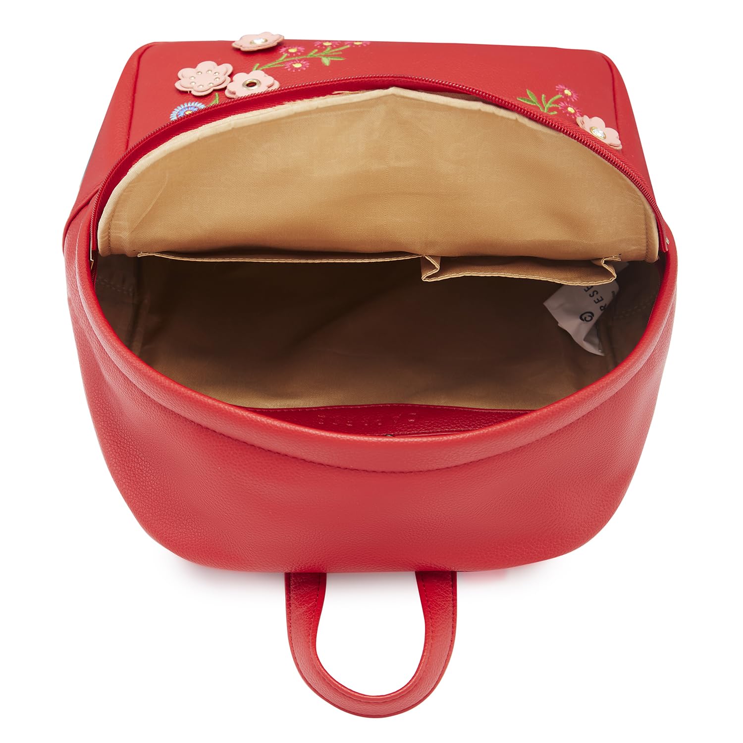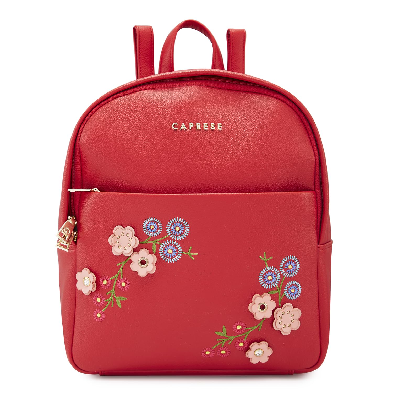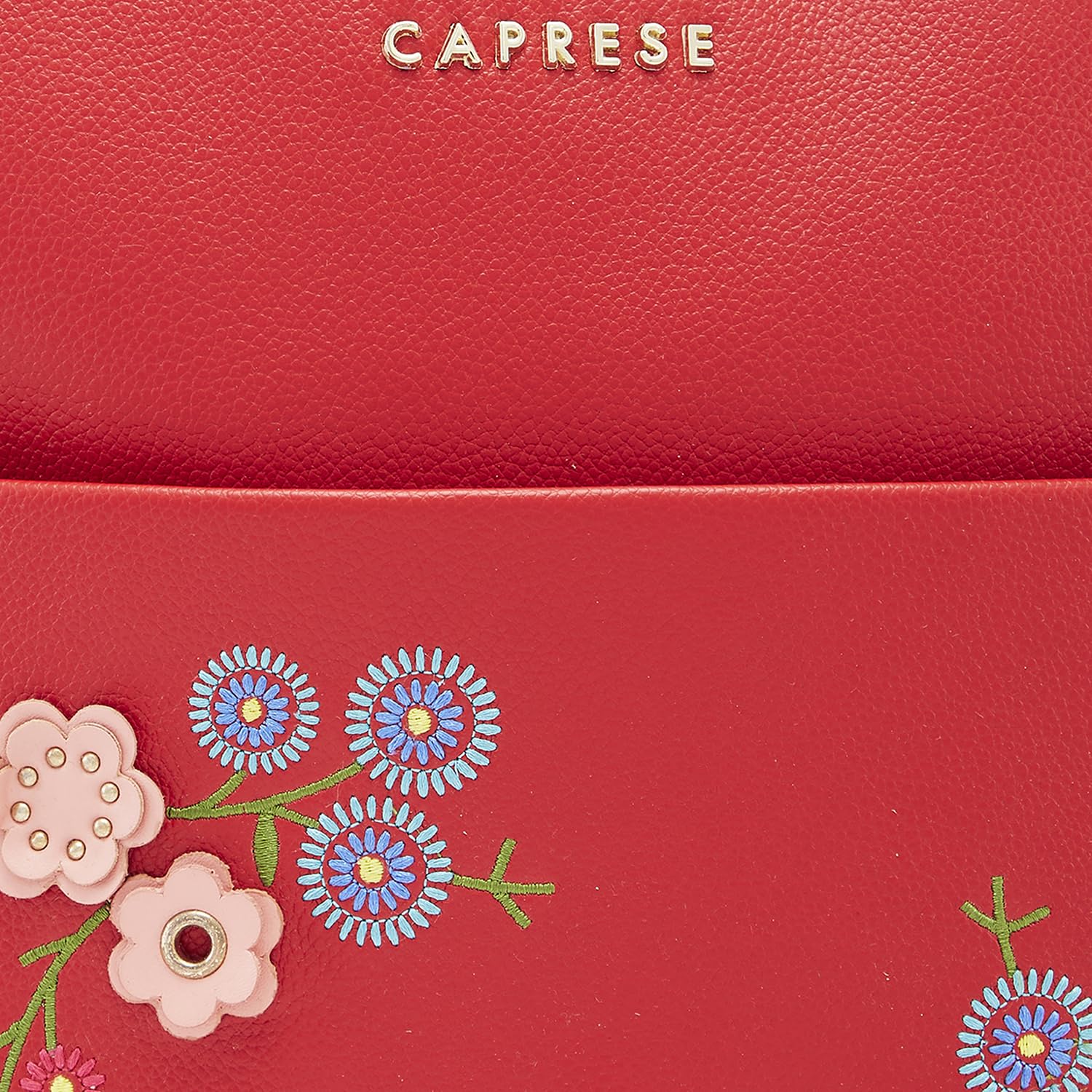 Caprese Erica Casual Backpack, Medium | Floral Embroidered Backpack for Women with Adjustable Shoulder Strap & Secure Zip Closure | Spacious, Versatile for Everyday Outings and Travel (Maroon)