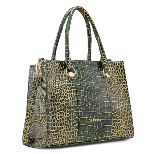 Caprese Miranda Tote Bag, Medium-Green | Stylish Handbag for Women | Spacious, Versatile Office & Daily Essentials Tote | Top Zip Closure