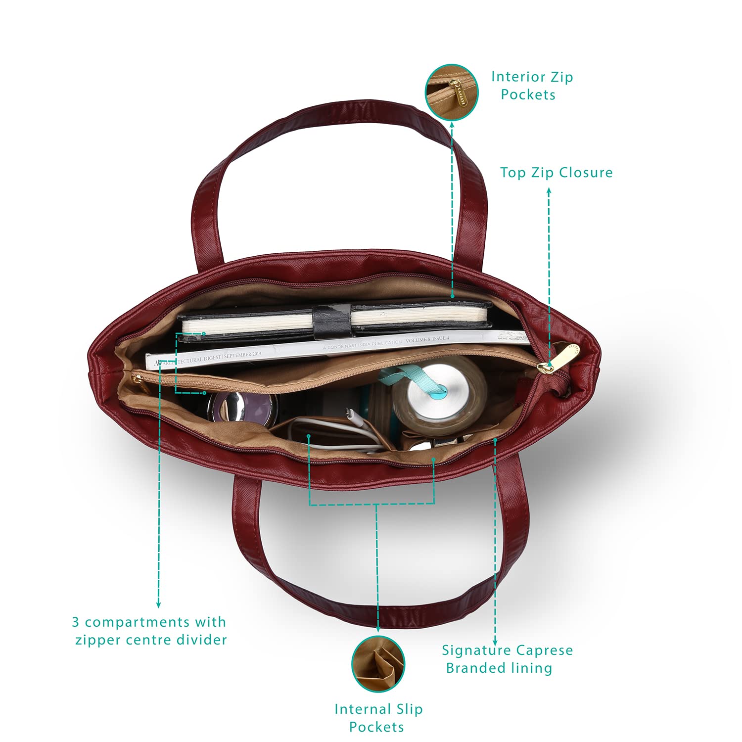 Caprese womens ALEXANDRIA T Large MAROON Tote Bag