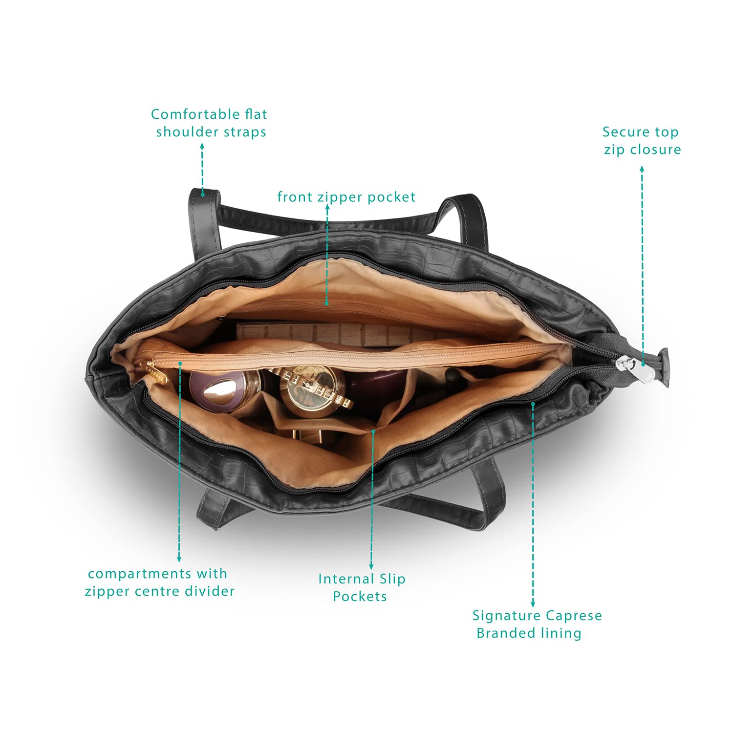 Caprese womens ELIZA T Large BLACK Tote Bag