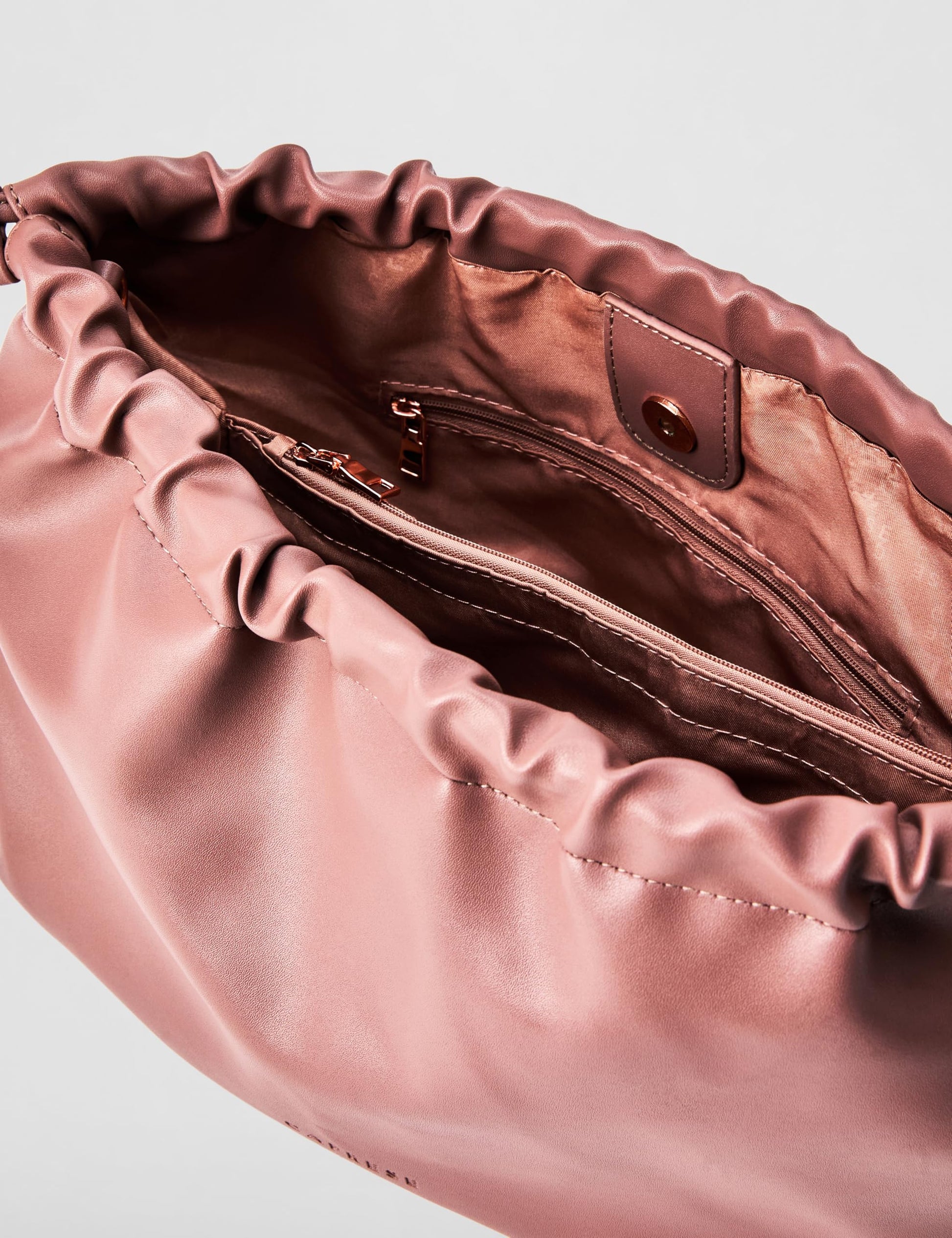 3 compartments with 1 internal center divider compartment.Top zip closure.Organised interior with 1 internal zipper pocket + 2 internal slip pockets .Dual carry : Comfortable chain shoulder handles + adjustable detachable sling handle