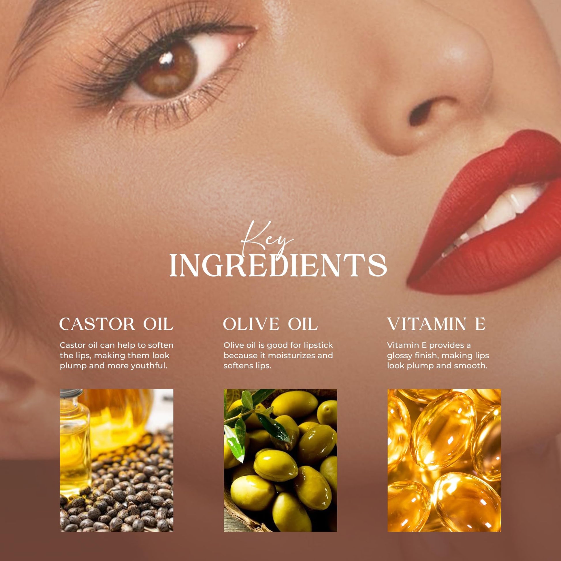 - Nourishing Lip Care Formula - Infused with Vitamin E, Castor Oil, and natural waxes, the formula not only gives rich pigment but also keeps your lips hydrated and soft even with matte finish.