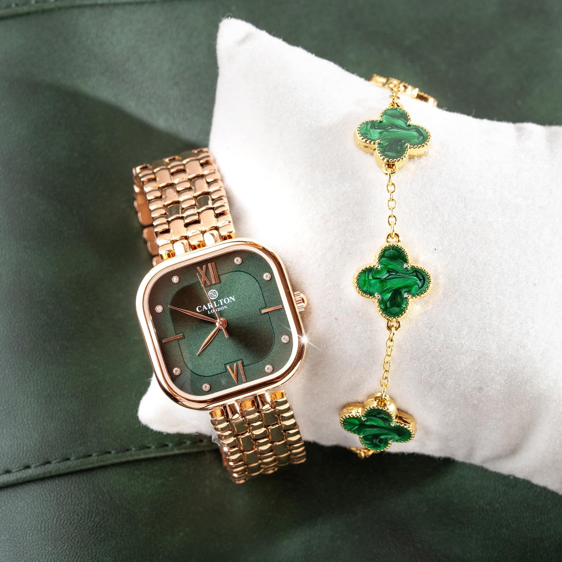 - Luxury Female Design: This is a stylish design ladies' watch and bracelet. Classic Emerald Green dial design fully showcases the beauty and charm of women, a sufficient match for any of your outfits.