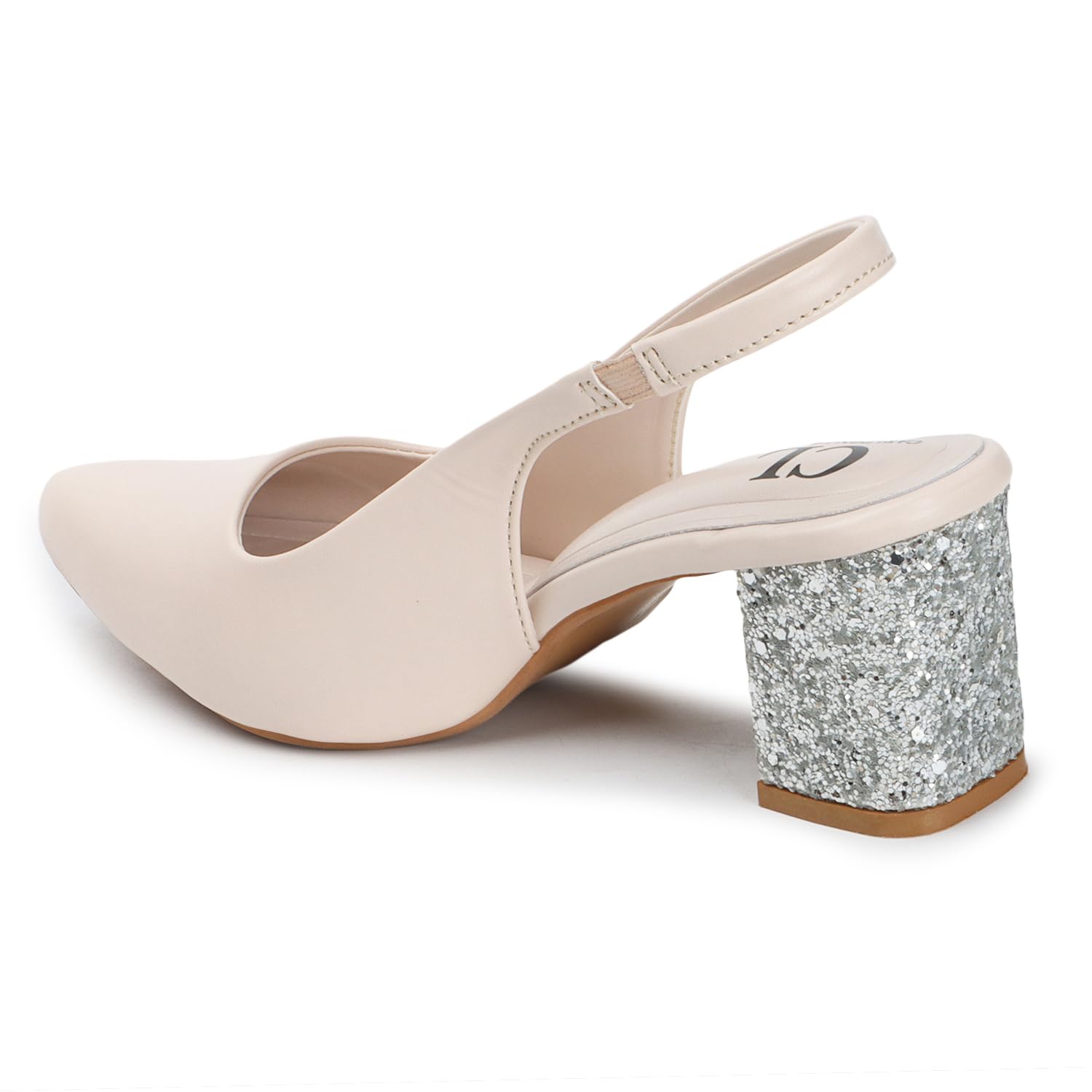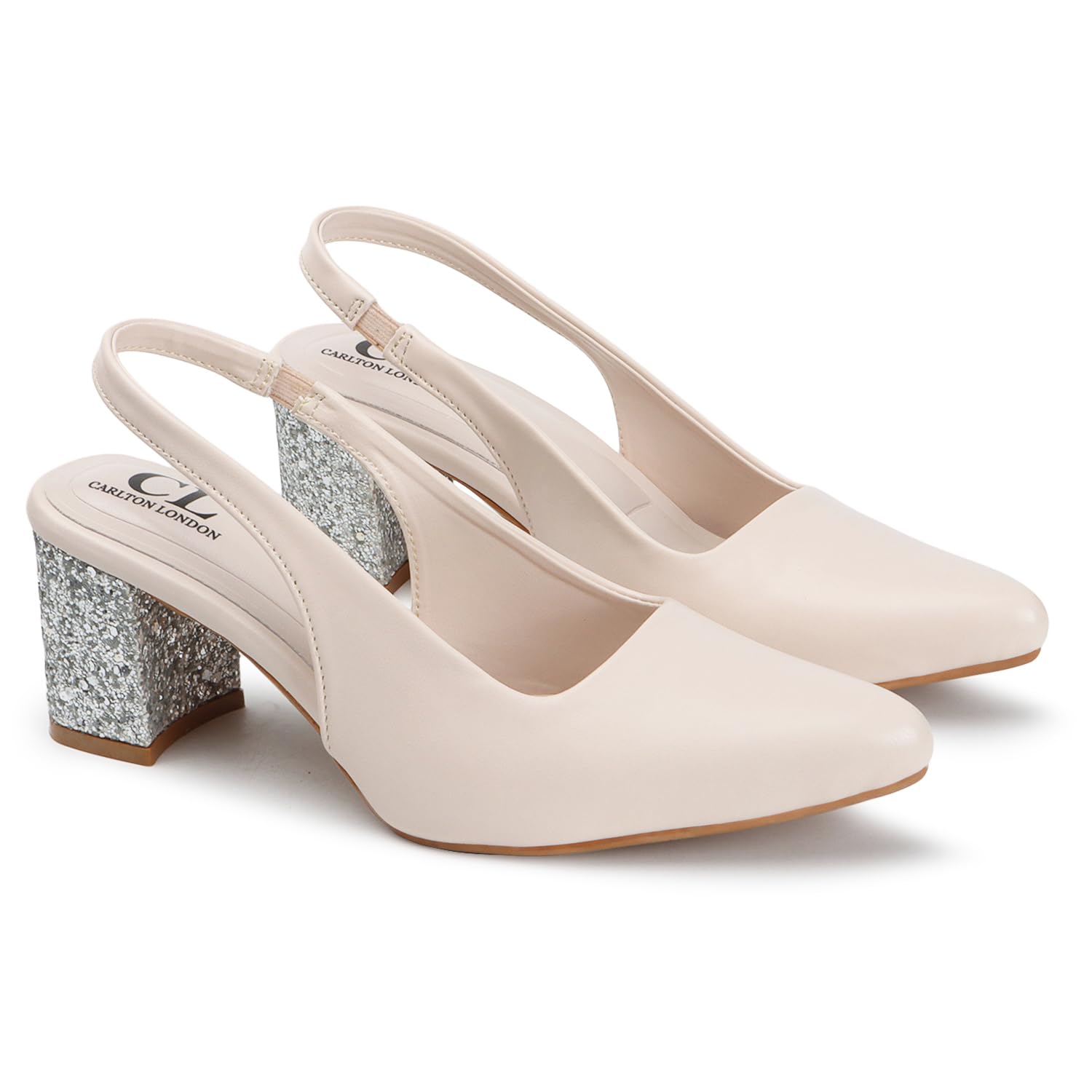 Carlton London Women Cream Stylish Backstap Sandal with Block Heels, Pointed Toe for Party and Formal Occasions (40)