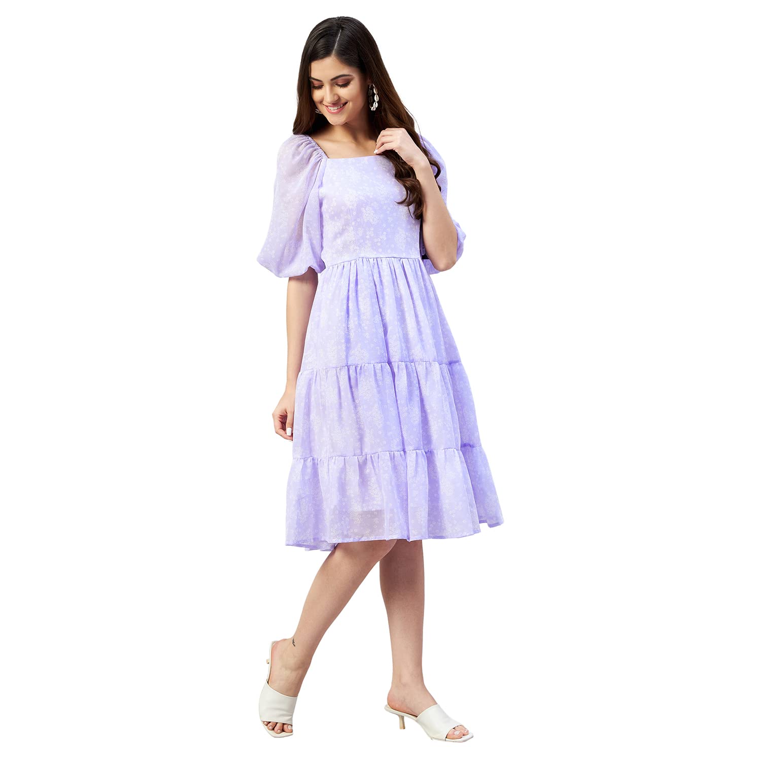 Carlton London Women's Georgette Fit and Flare Knee-Length Dress (CL646A_Lavender_Small)