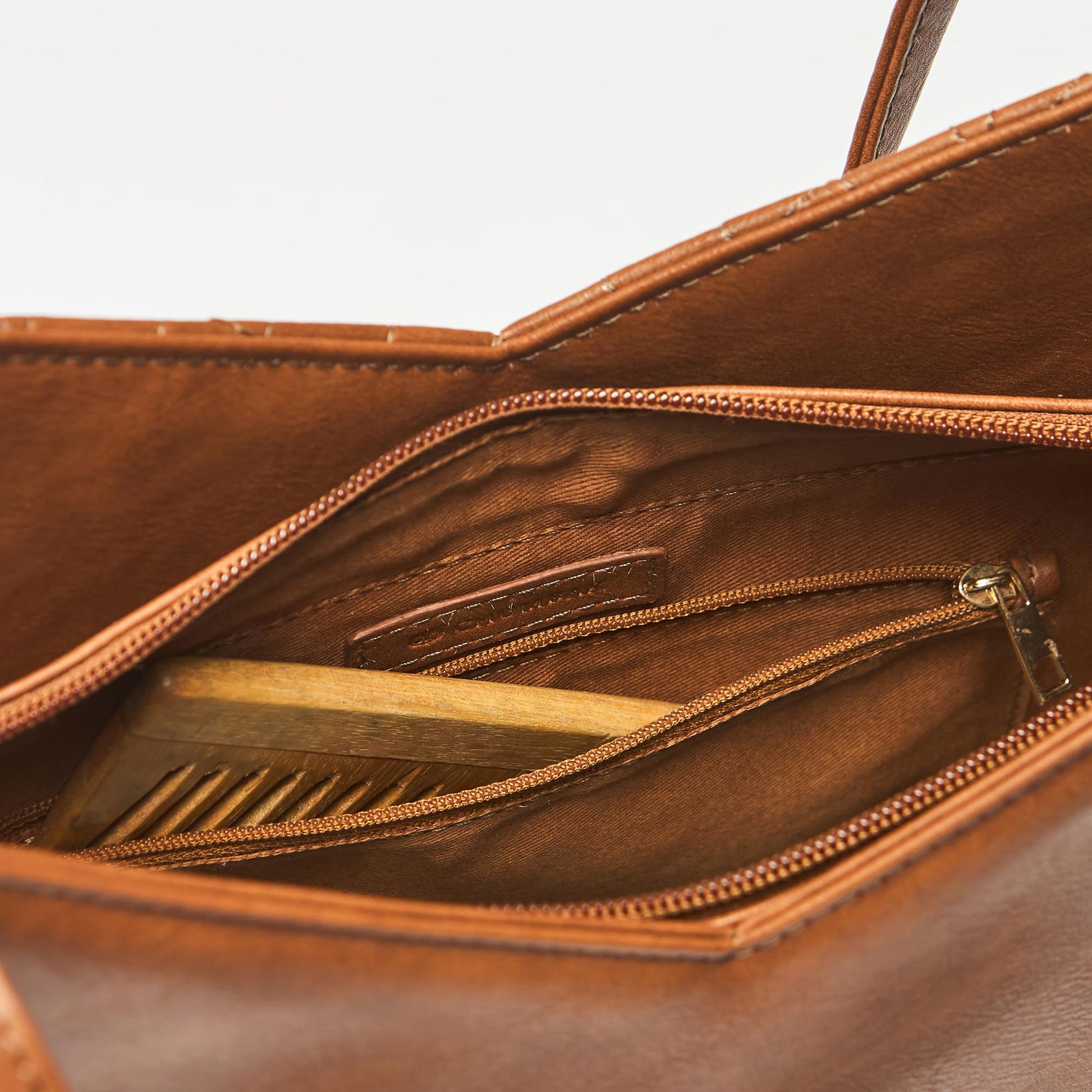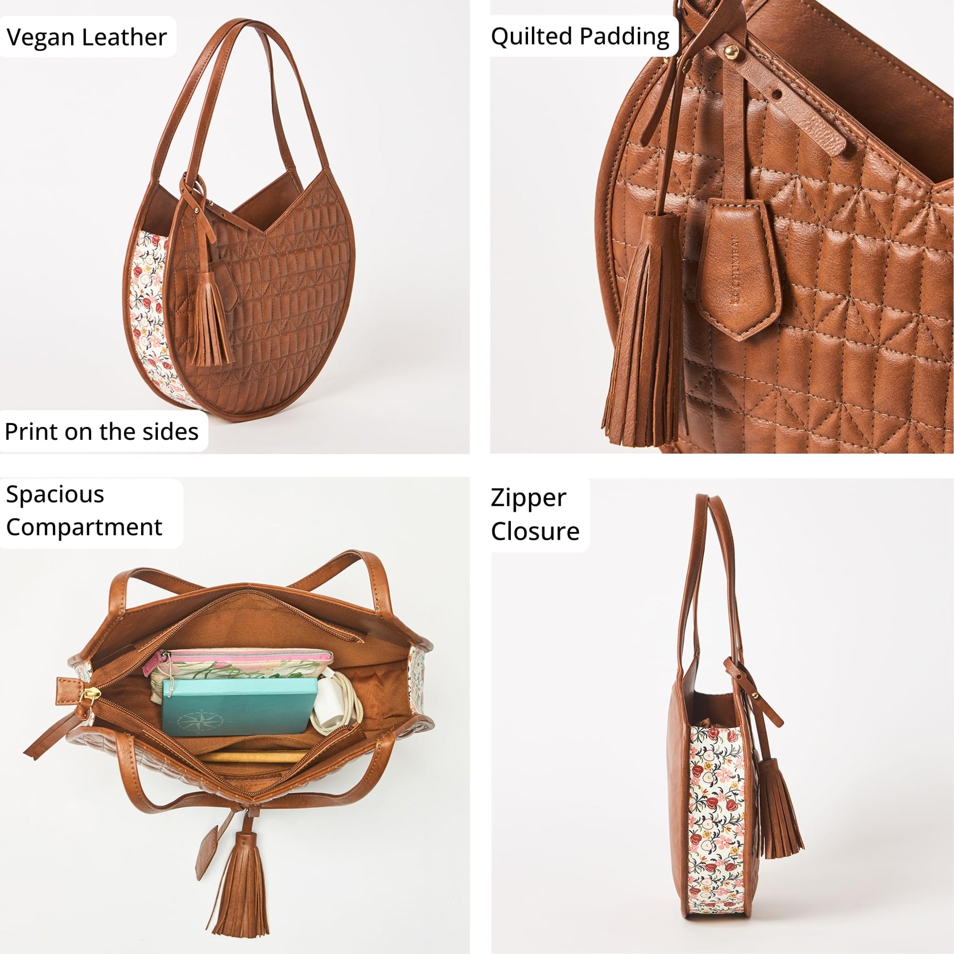 Chumbak Amalfi Tote Bag, 5.5L, Tan, PU Outer with Polyester Lining, Spacious Shoulder Bag with Kashmiri Motif, Kashmir Trails Collection
