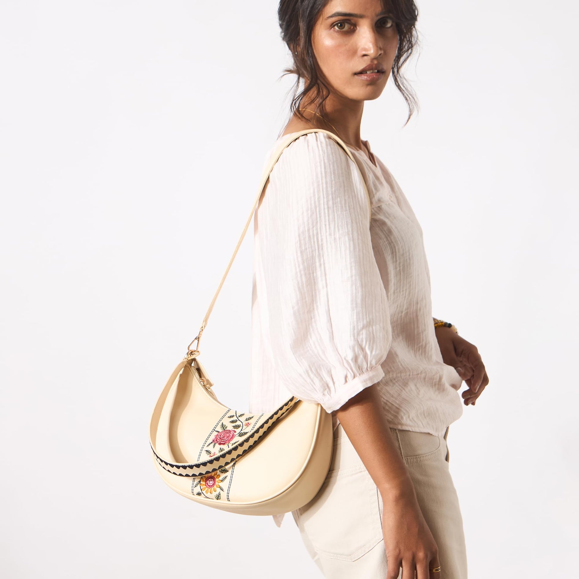 Chumbak Off White Tote Bag for Women, Zipper Closure, Dual Strap, Palace Memoirs Collection, Stylish Designer Handbag Purse Wallet Sling Tote, Everyday Casual Ethnic Travel Office Use