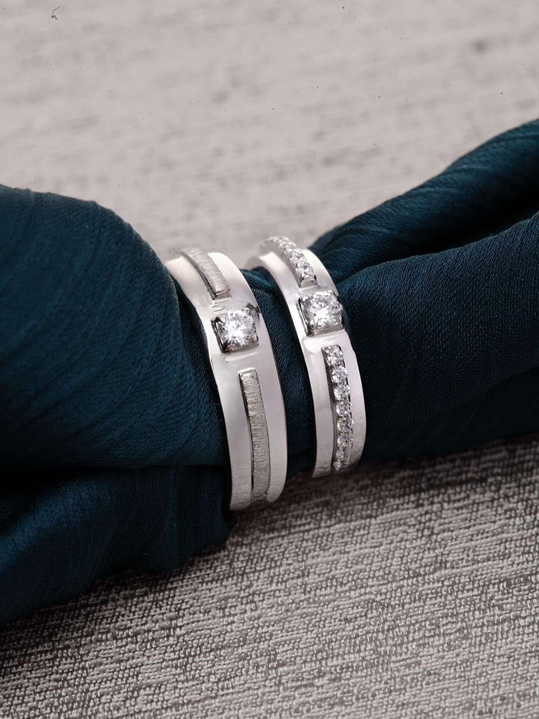 Clara Pure 925 Sterling Silver Nario Adjustable Couple Band, Promise Rings for Lovers | Gift for Men and Women | Partial Matte Finish