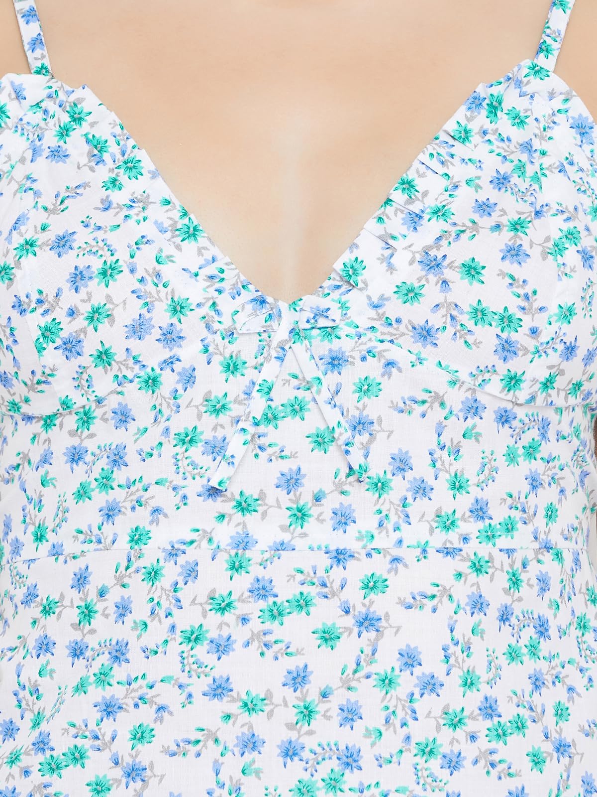 Product Type: Short Nighty; Fabric: Cotton; Pattern: Floral Print; Neck: Shoulder Straps; Sleeve: Sleeveless; Length: Short*Note- Manufactured in India with Raw Materials sourced from India.