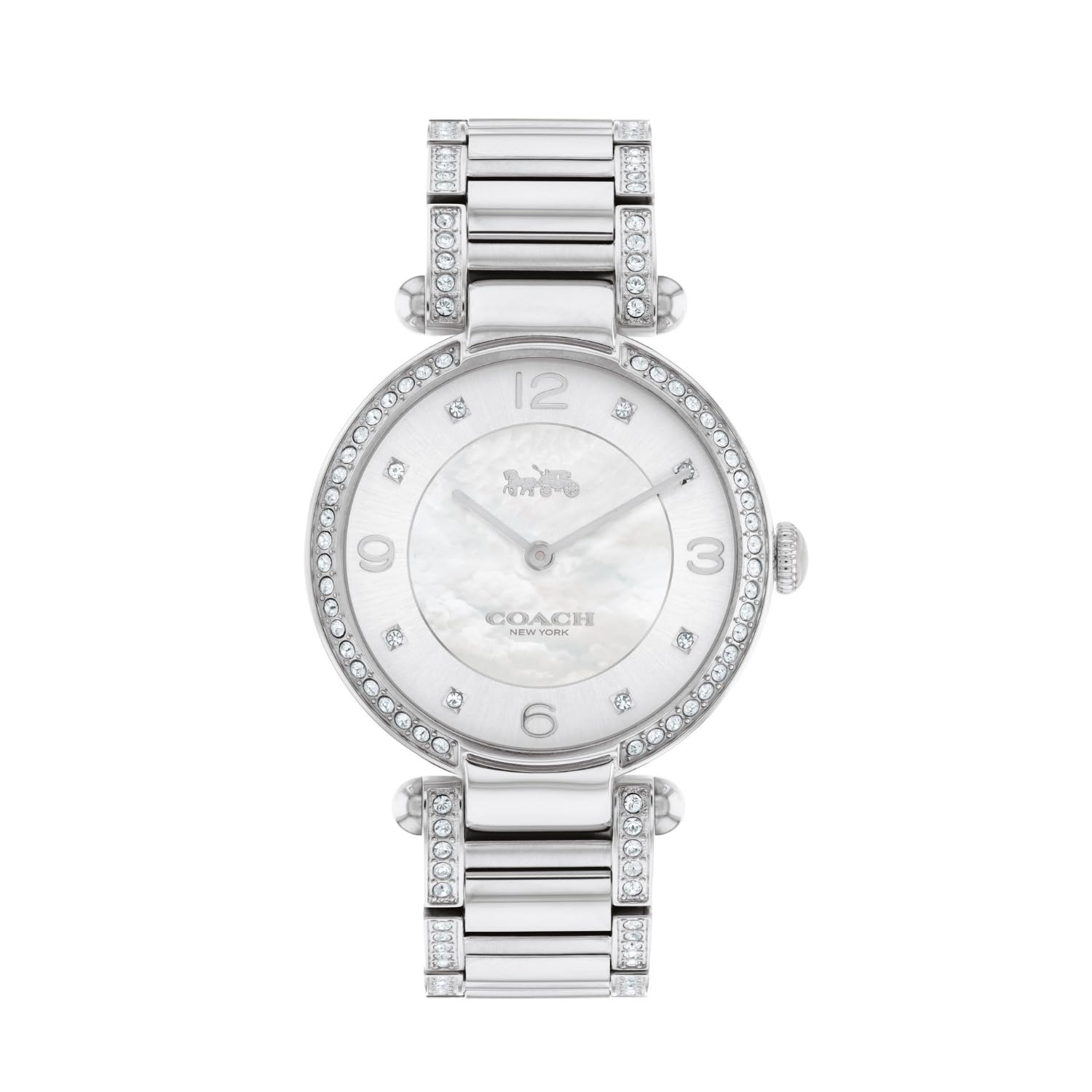 - Introducing the Coach Cary Women's Watch, where elegance meets functionality. Featuring a Quartz Basic movement, this stylish timepiece ensures precise timekeeping. The durable mineral glass and water resistance add lasting protection, making it both practical and chic. Elevate your everyday look with the timeless sophistication of the Coach Cary watch