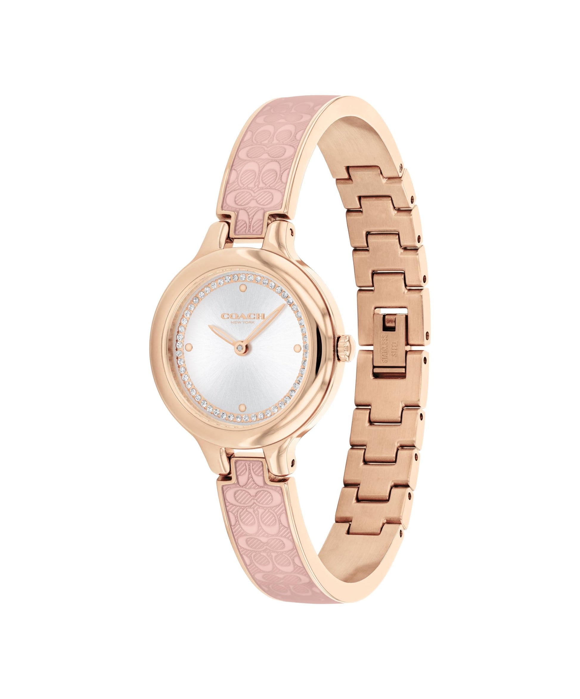 - Introducing the Coach Chelsea Women's Watch, a refined blend of elegance and precision. Featuring a Quartz basic slim movement, this stylish timepiece ensures accurate timekeeping with a sleek profile. The durable mineral crystal adds lasting resilience, making it both practical and beautiful. Elevate your everyday look with the sophisticated charm of the Coach Chelsea watch.