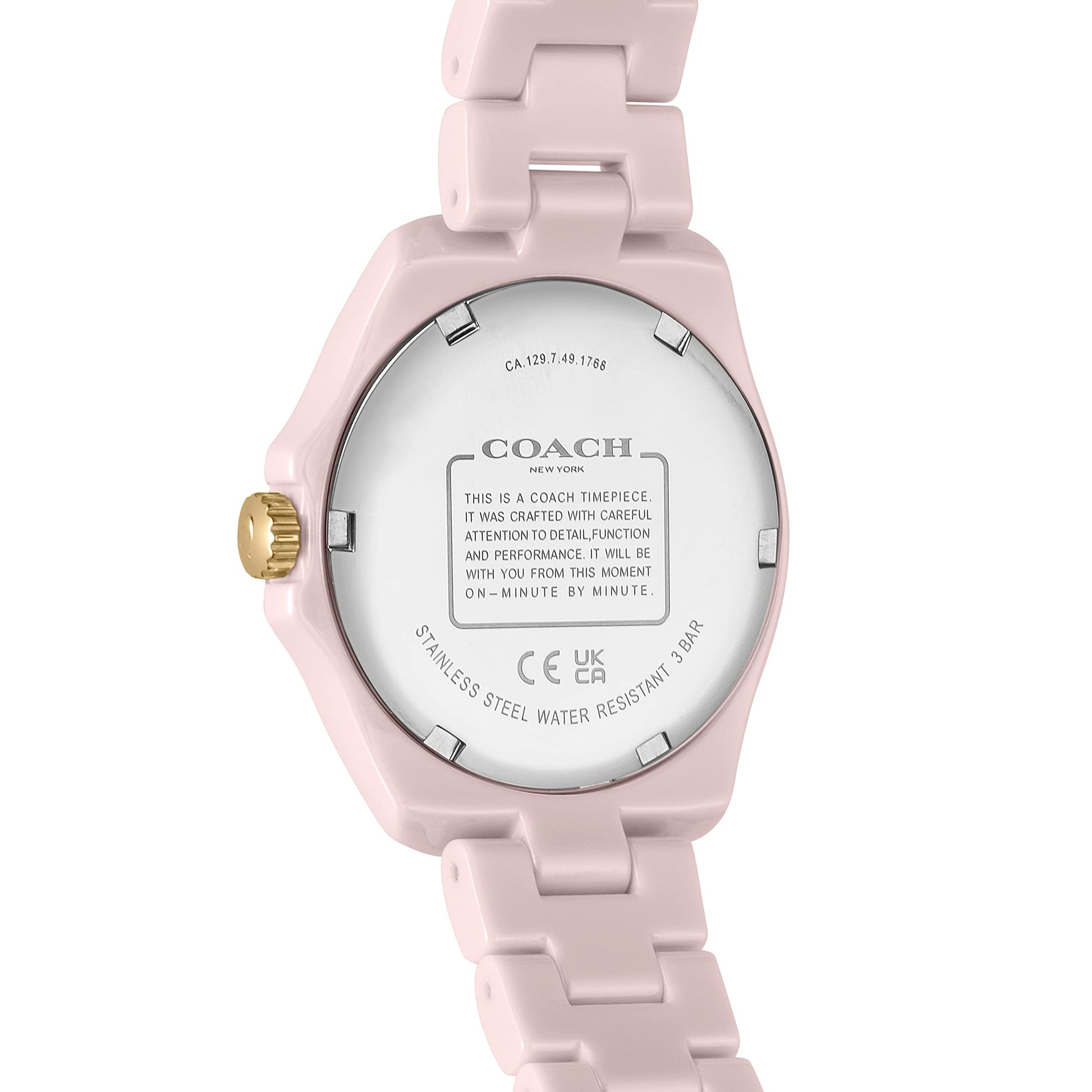 COACH Coach Watch Women's PRESTON Ceramic Quartz Watch Watch Brand, Pink, Bracelet Type