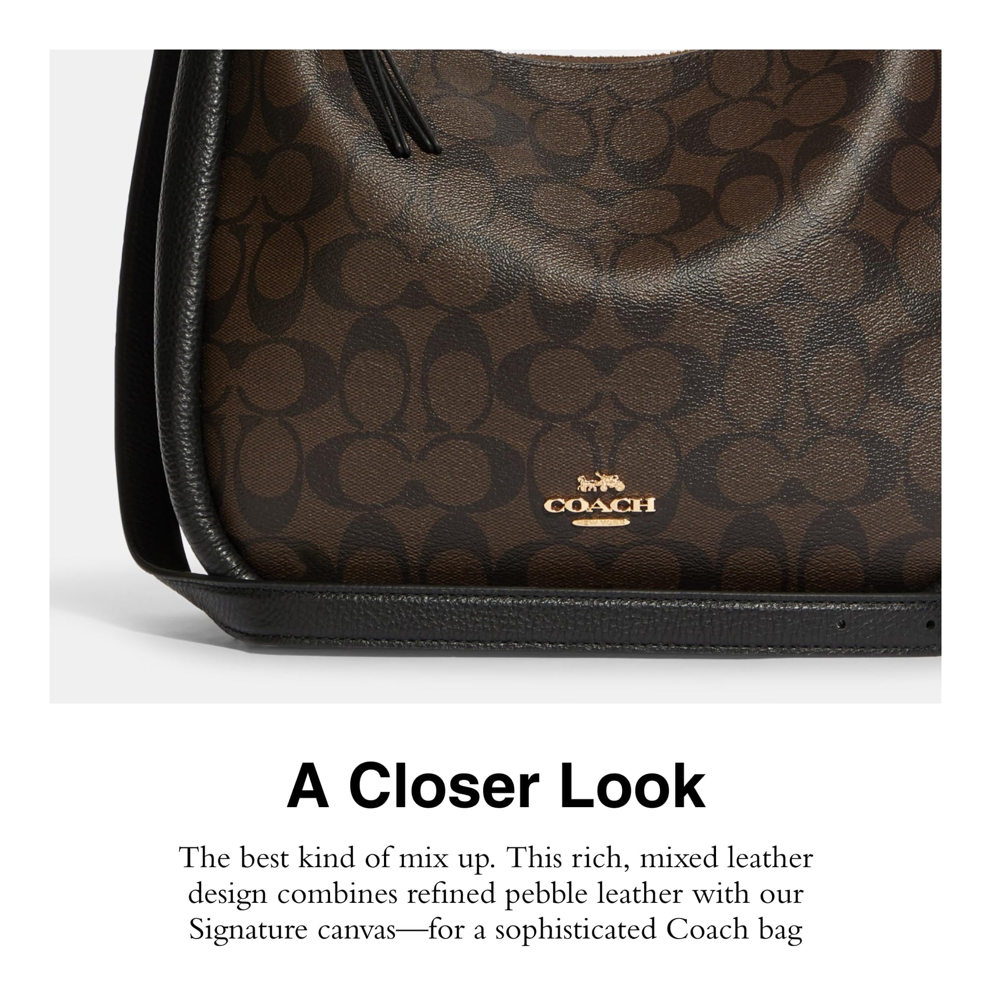 - Our Signature Canvas: The best kind of mix up. This rich, mixed leather design combines refined pebble leather with our signature canvas - for a sophisticated Coach bag