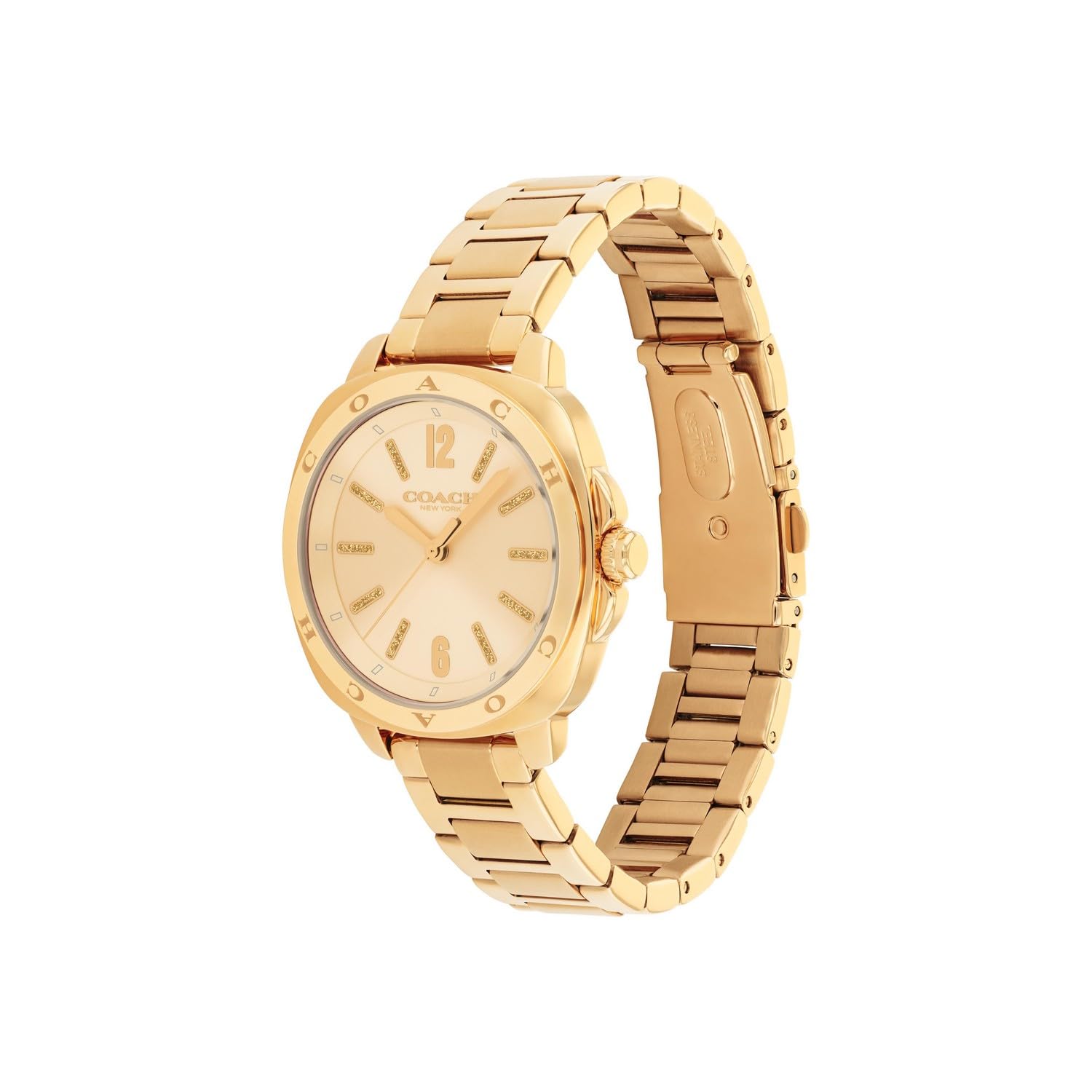 Coach Kitt Qtz Basic Champagne Tonneau Dial Women's Watch|Ionic Plated Thin Gold Steel Material|Gold Color Band - 14504468