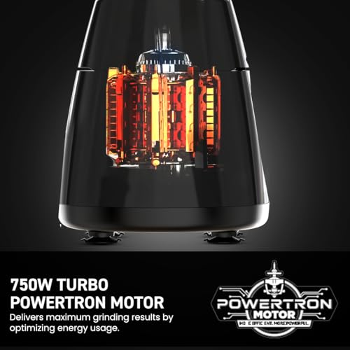 - Powertron 750W Motor: The Powertron 750W motor is engineered to deliver superior grinding performance while optimizing energy consumption. This powerful motor ensures that even the toughest ingredients are processed quickly and effectively, allowing you to achieve the perfect consistency in your blends and mixes. Its efficiency not only contributes to high-quality results but also helps reduce electricity costs, making it a smart choice for any kitchen.