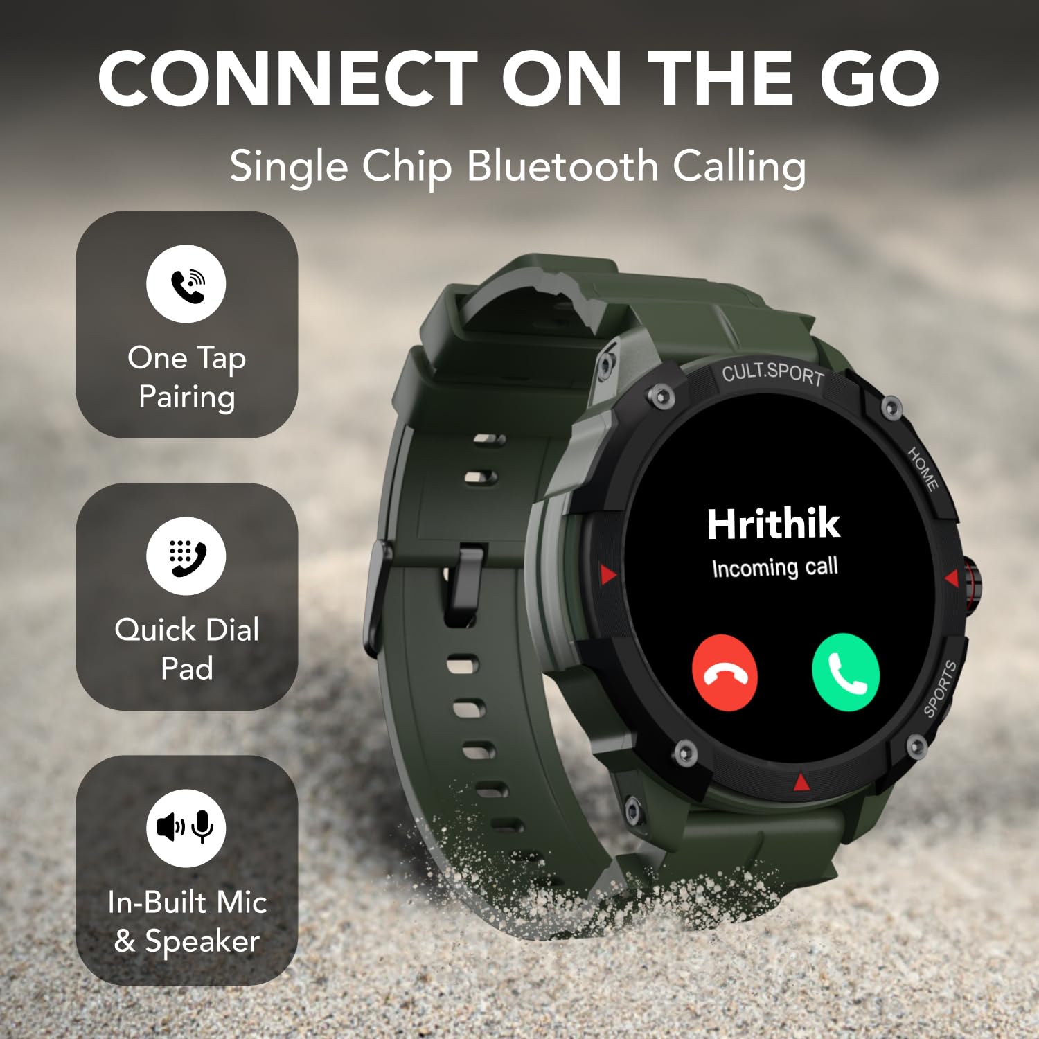 Cultsport (Refurbished) Ranger Xr 1.43" Amoled Smartwatch, Outdoor Rugged Smartwatch For Men, 850 Nits, Bluetooth Calling, 420Mah Battery, Sports Recognition, Health Tracking, Round Digital Watch