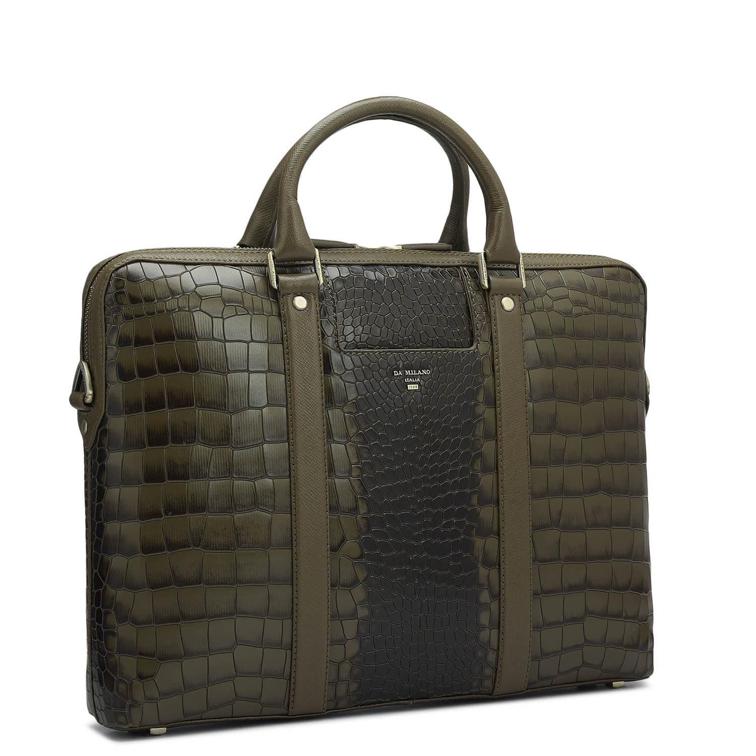 Da Milano Leather Laptop Bag for Men & for Women - Fits Upto 14" Laptop - Green
