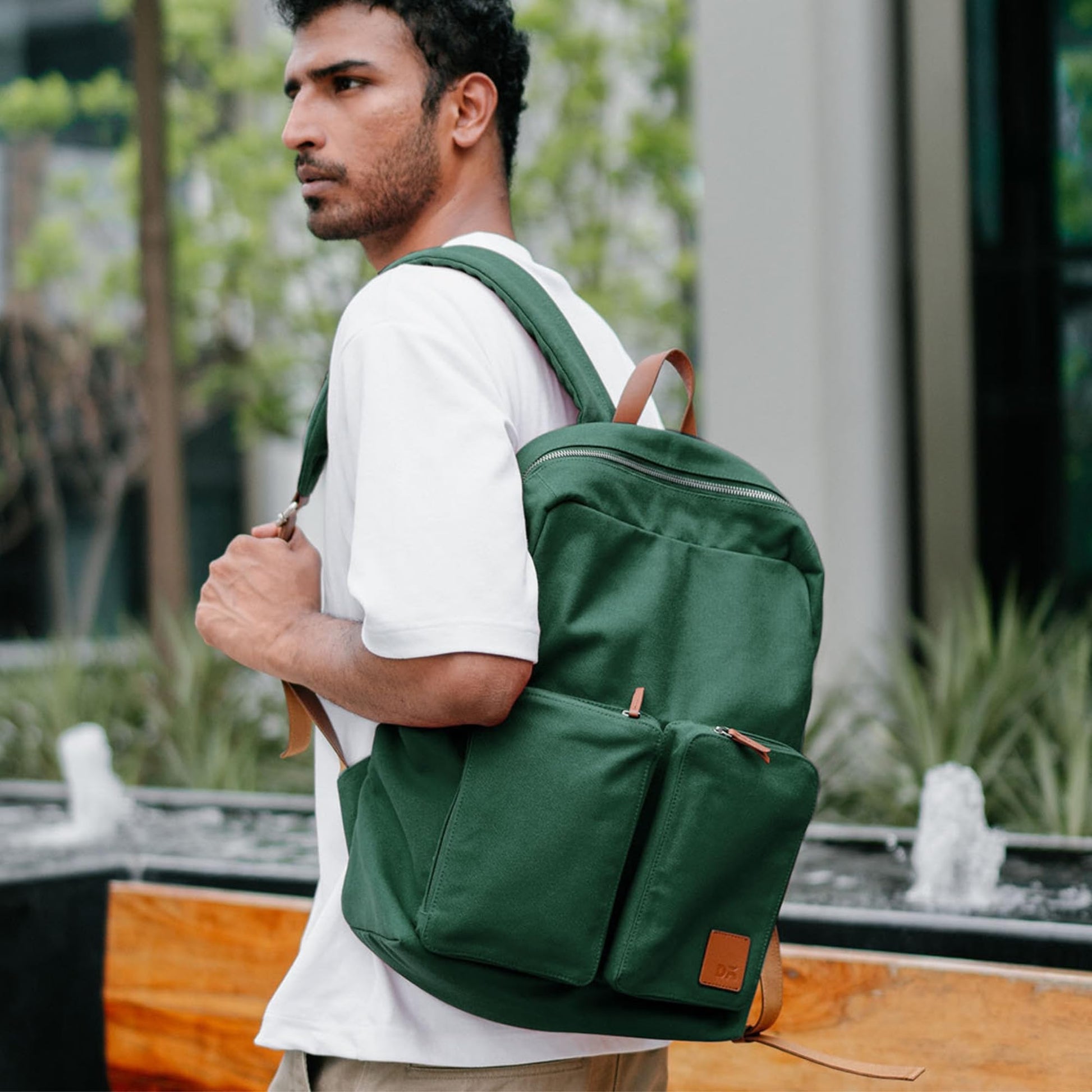 DailyObjects Forest Green Field Backpack| Casual Laptop Bag with Luggage Sleeve | Unisex Travel Backpack | Made of Durable Canvas Material | Zippered Compartments with Pockets