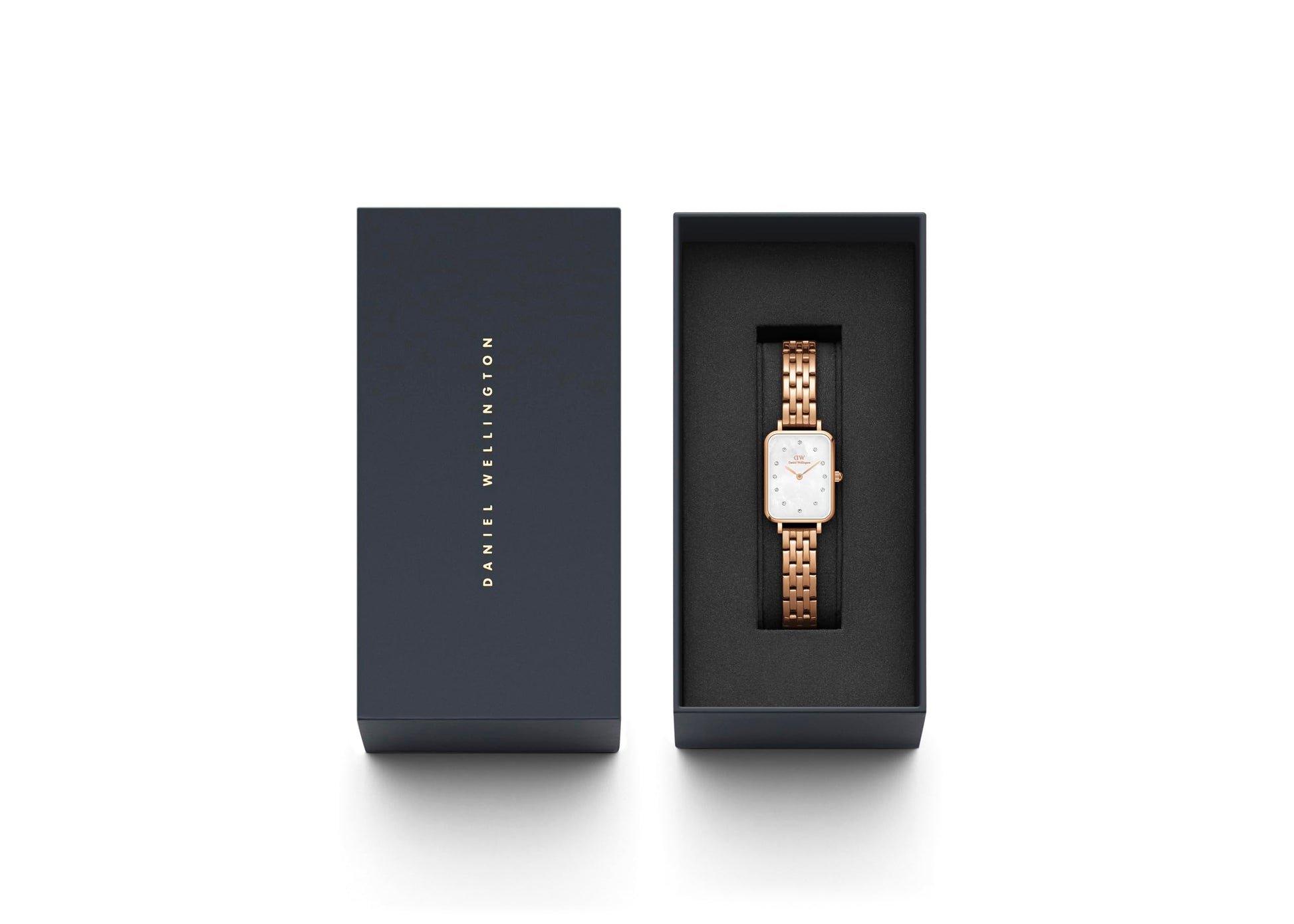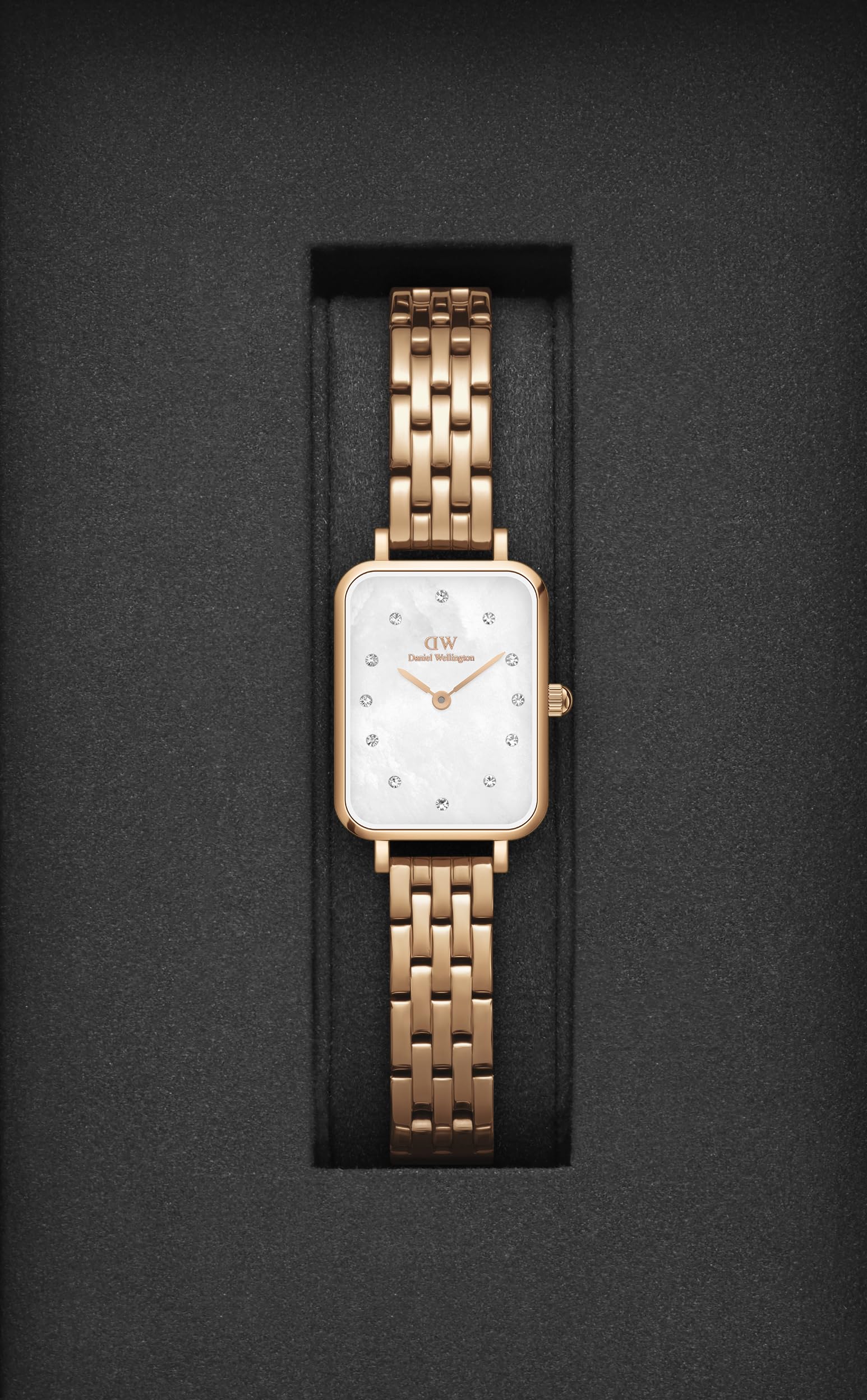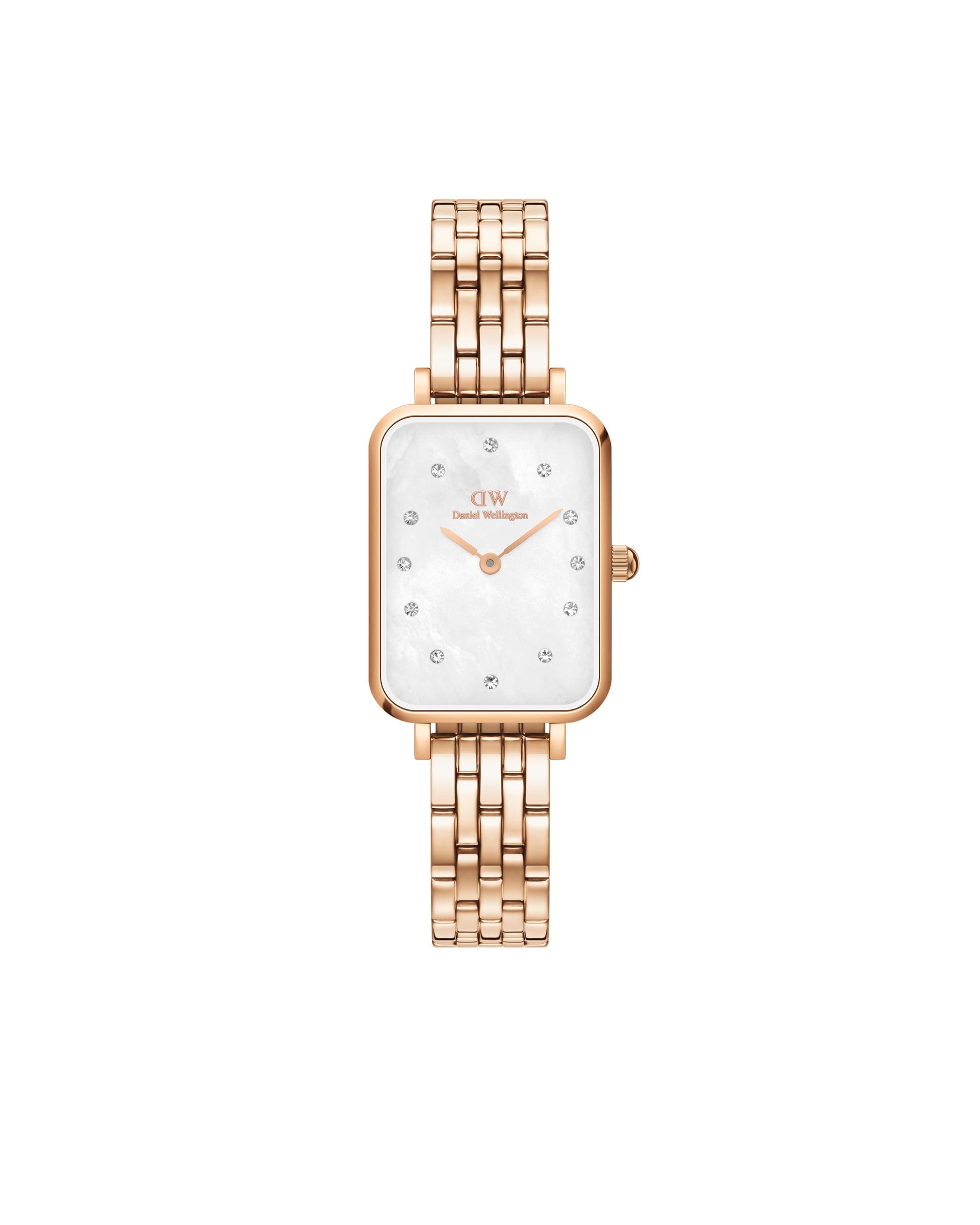 Daniel Wellington Stainless Steel Quadro Lumine 20X26 5-Link White Dial Women Analogue Watch, Rose Gold Band