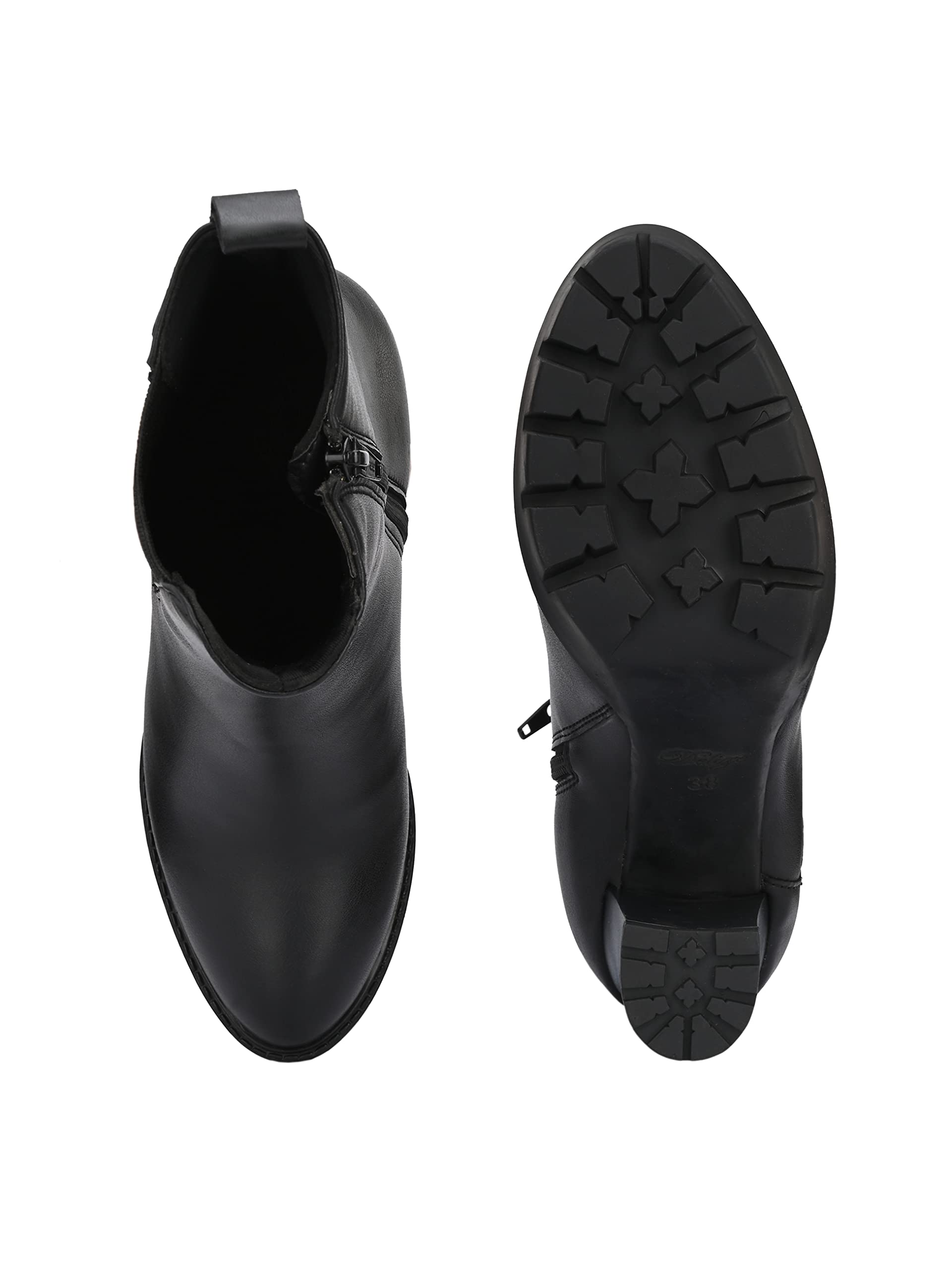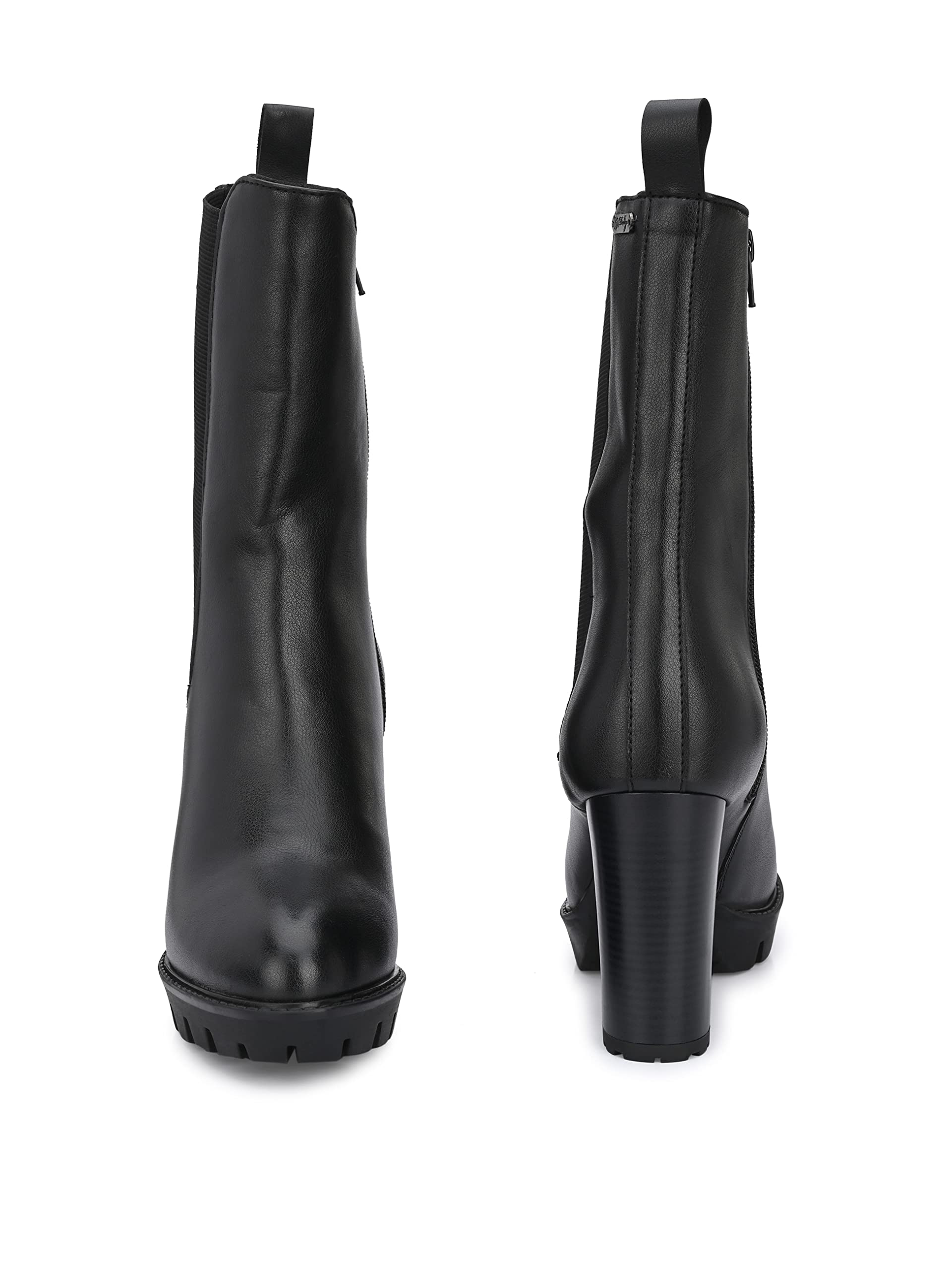 Delize Black Women Vegan Leather, Calf Length, high Heel Chelsea Boots