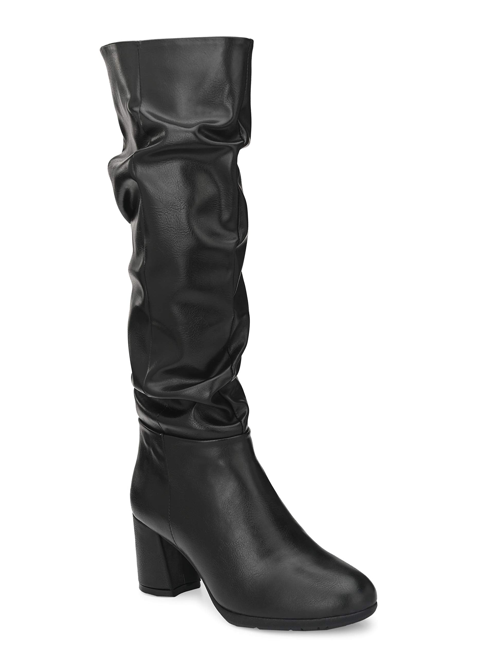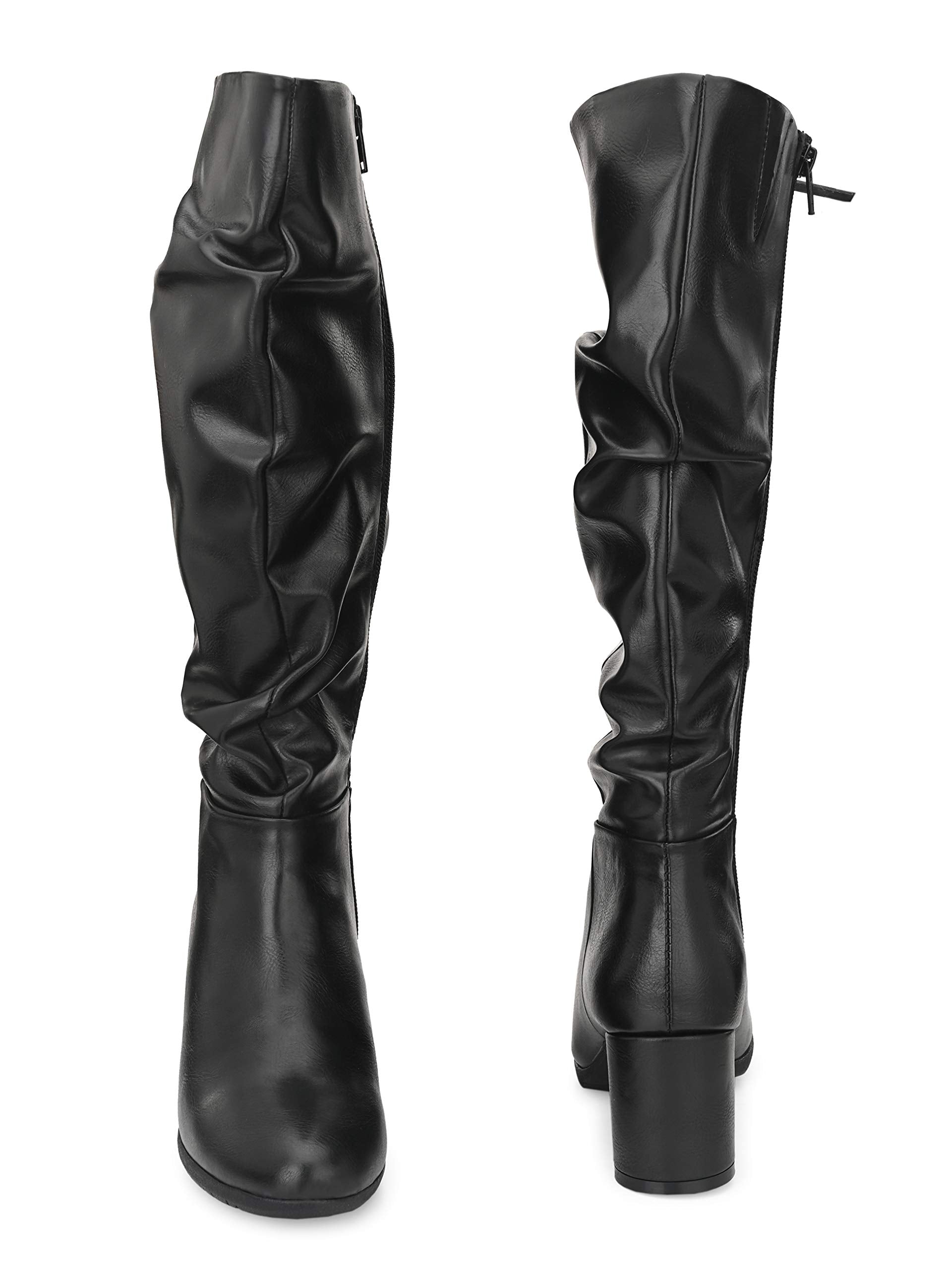 Details: women calf high boots with heel in synthetic leather with gathers. Inside zip to wear easily. Fabric lining and memory foam insock for ultimate comfort.