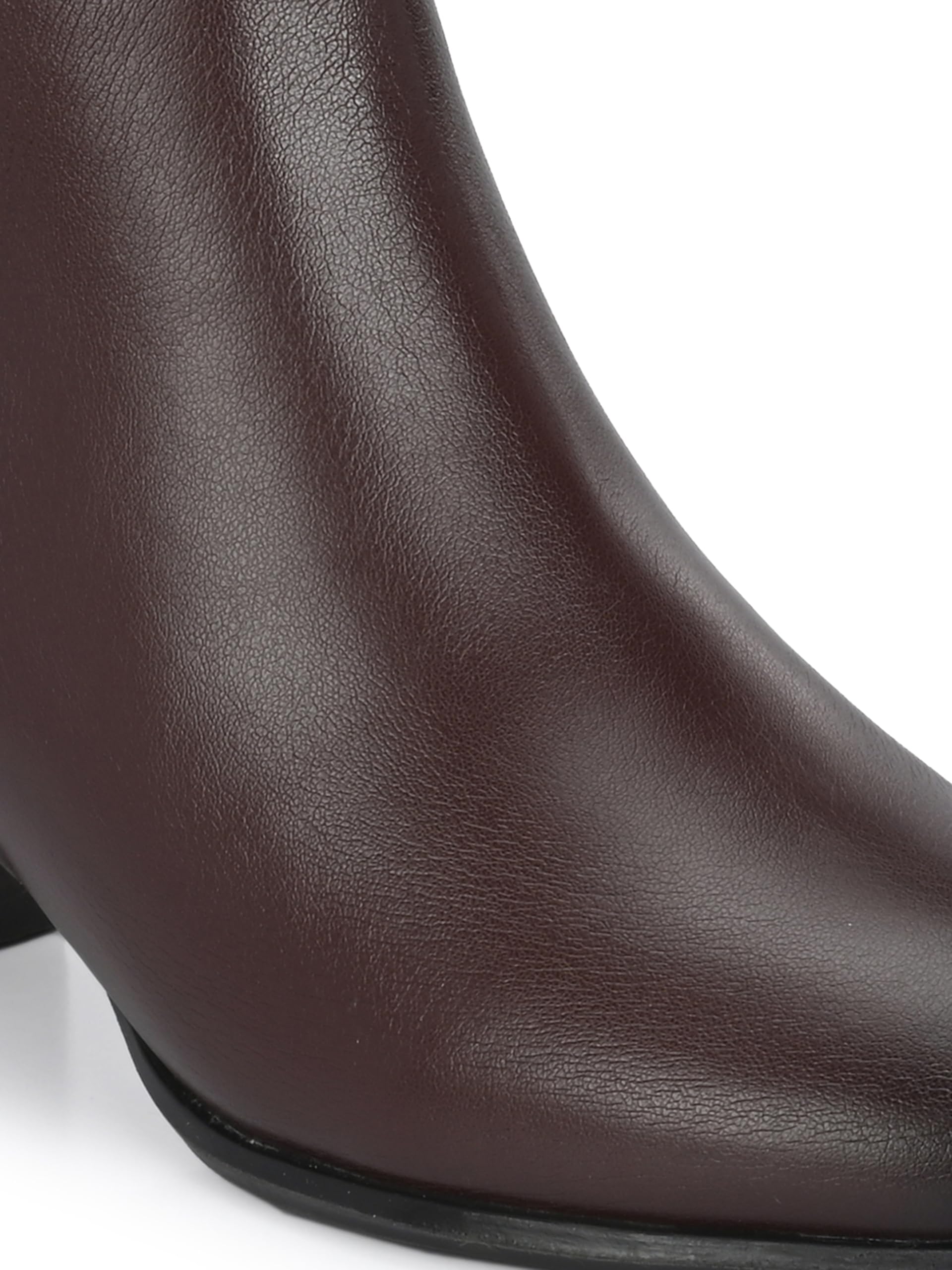 Black women,s synthetic leather mid heeled, knee high boots with inside zip to wear easily. Fabric lining and memory foam insock for ultimate comfort.