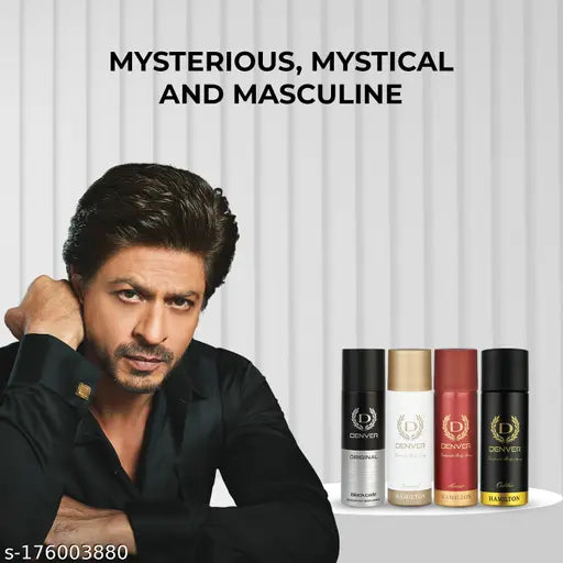 DENVER Black Code,Caliber,Honour & Imperial Nano Travel Size Pack Deo Perfume Body Spray - For Men (50ml X 4 )