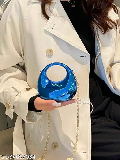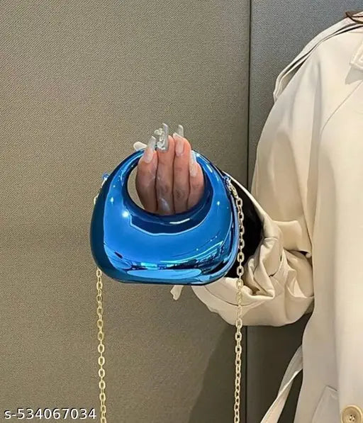 Every detail of this party clutch for women from the shining blue material to the elegant gold chainhas been made to ensure that feel radiant and charm.