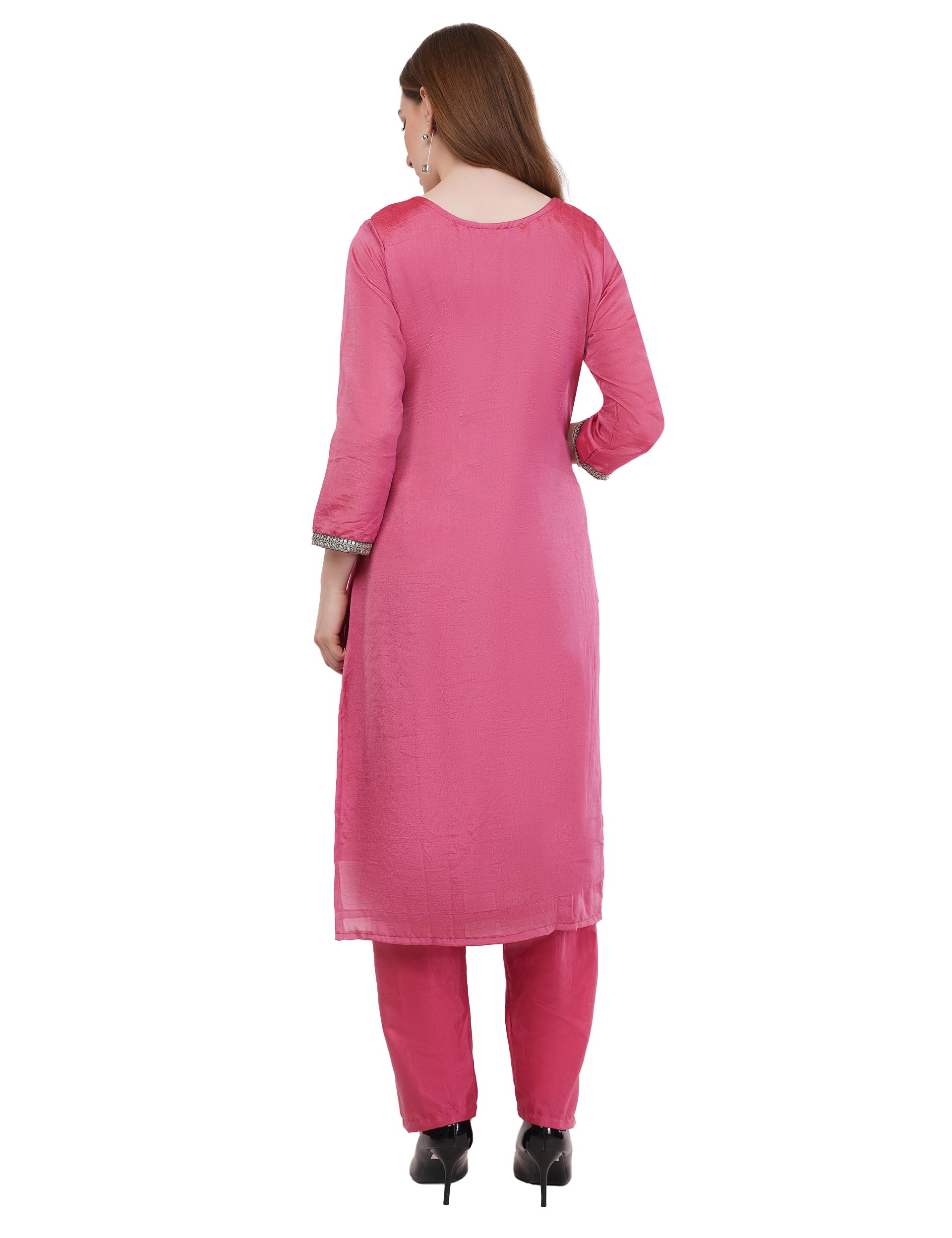 - Premium Vichitra Silk Fabric for Comfort: Our Suit set is composed of soft and breathable Vichitra Silk which guarantees a comfortable fit throughout the day. Being lightweight and smooth on the skin, this woman's outfit provides a relaxed feel without compromising style.