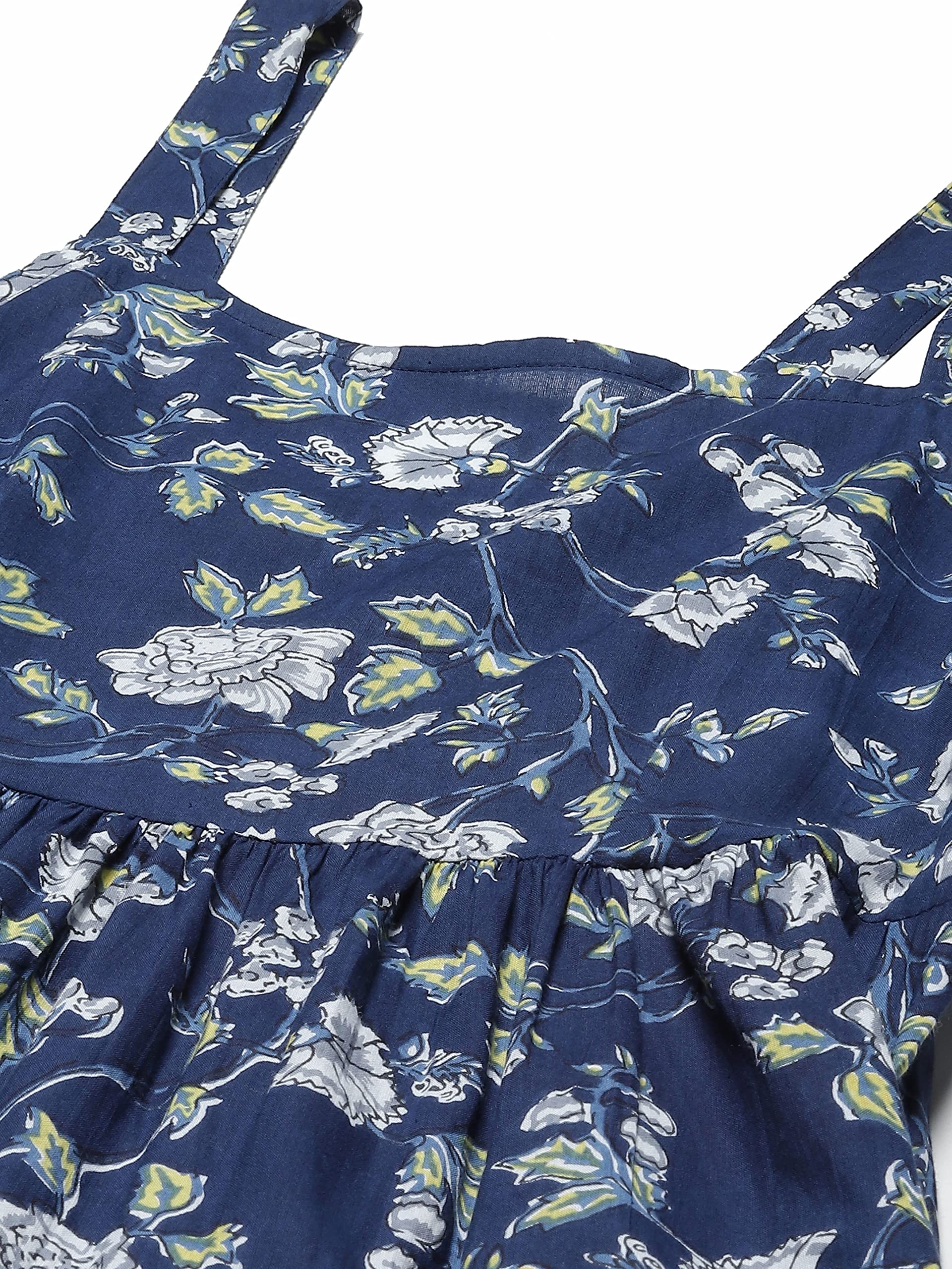 Divena Blue Floarl Shoulder Strip Long Dress