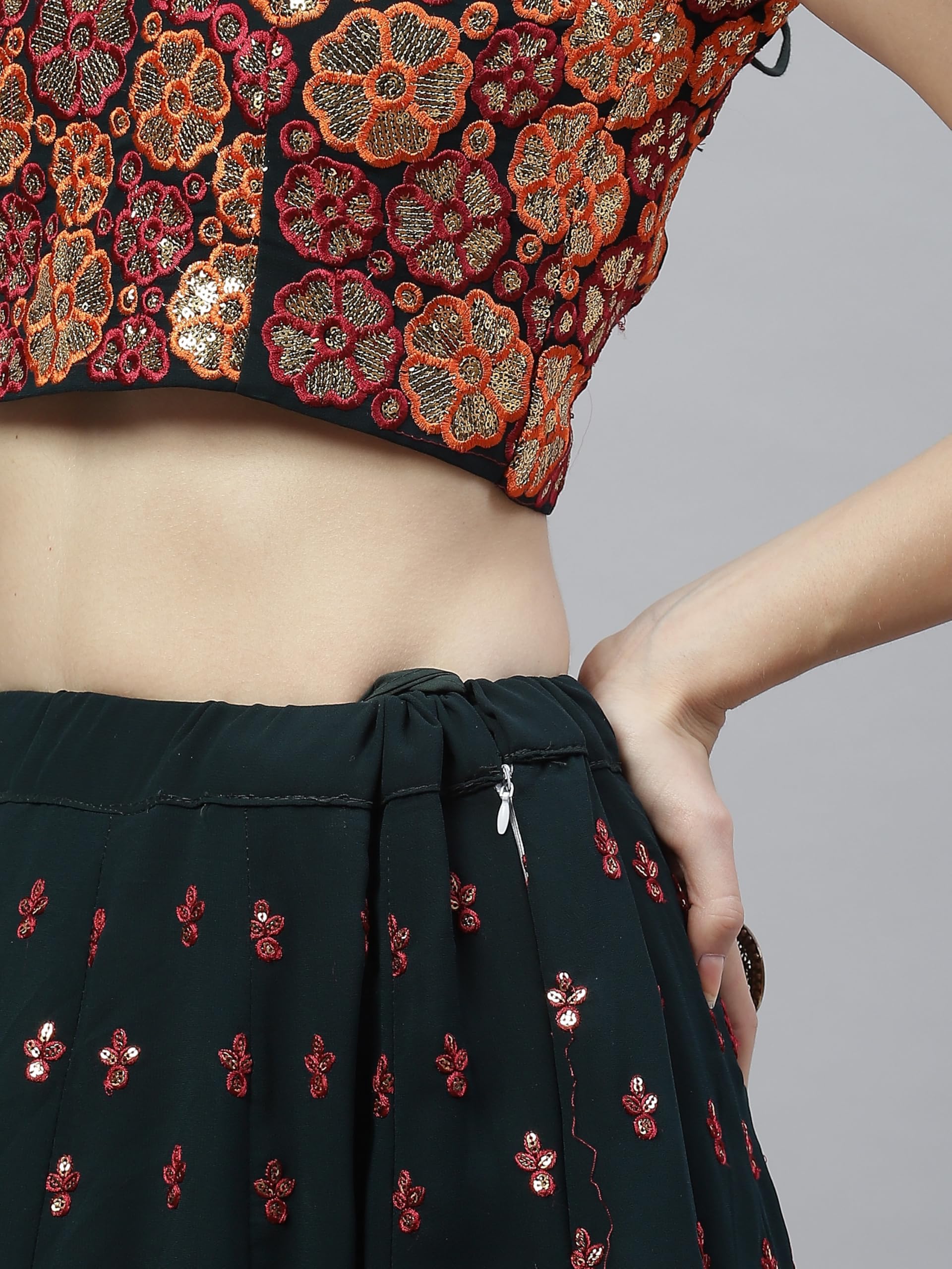 Divine Exim Women's Georgette Semi Stitched Lehenga Choli with Dupatta | Traditional, Wedding, Ethnic Wear Lehenga | Thread and Sequin Embroidery Pattern (Green)