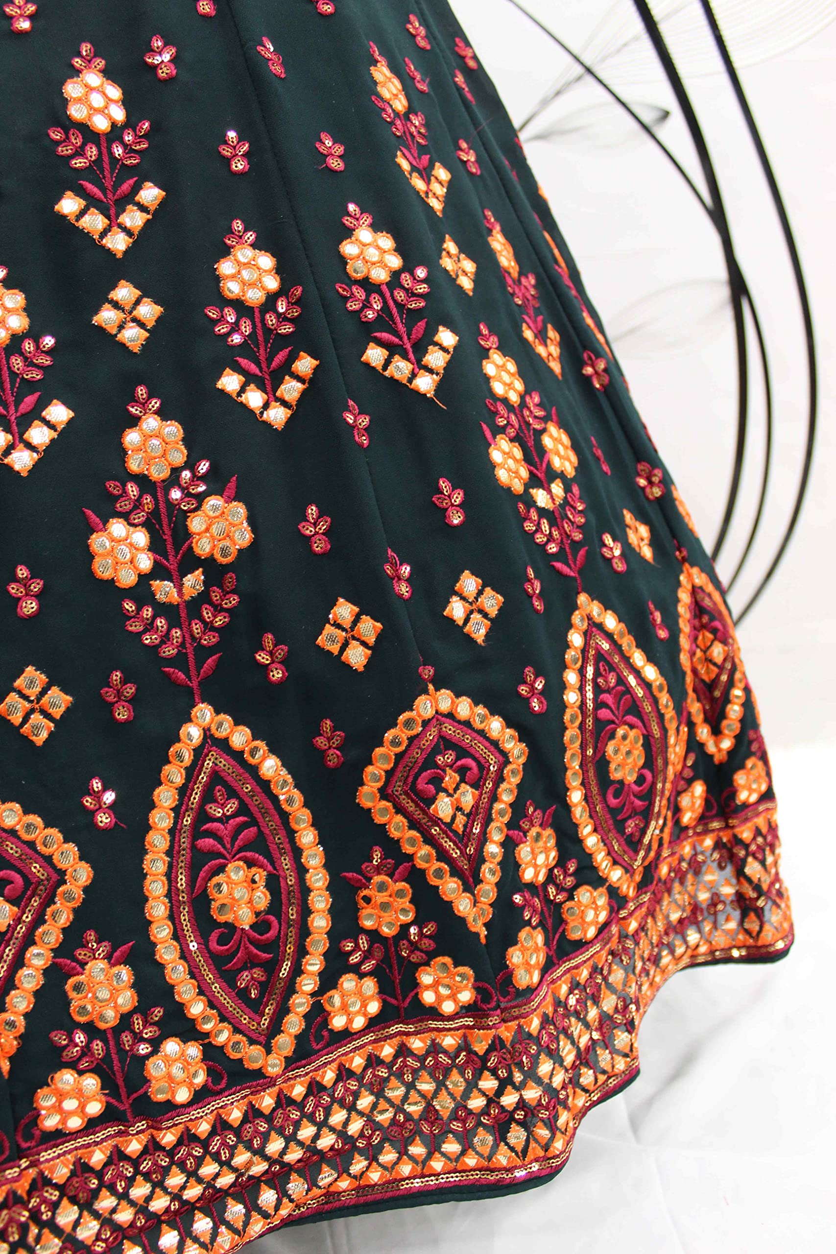 Divine International Trading Co Women's Georgette Embroidered Semi-Stitched Lehenga Choli with Dupatta (1944-Green-Wedding-Girlish-Latest-Lehenga; Free Size)