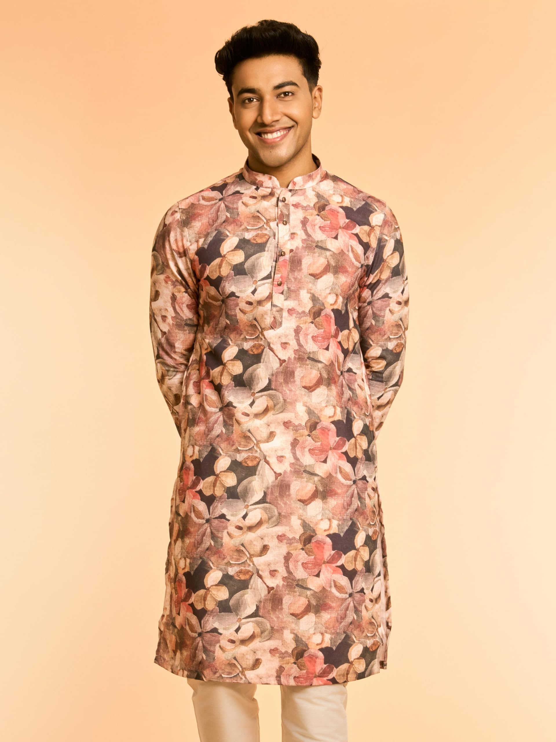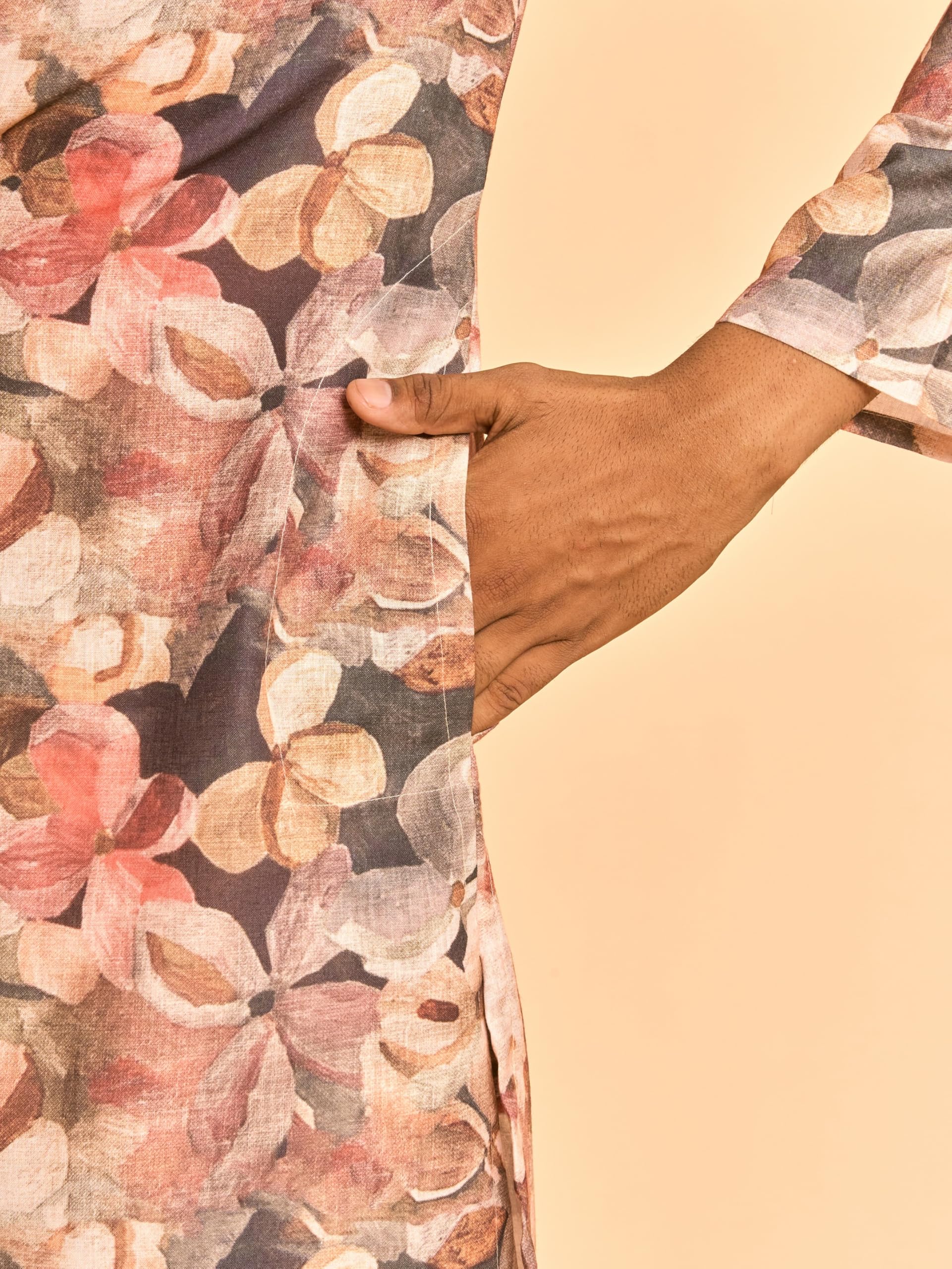DIWAS BY MANYAVAR Men's Cotton Blend Abstract Floral Print Casual Kurta Set (2pcs)