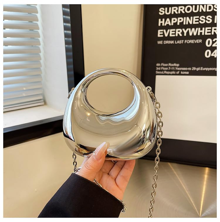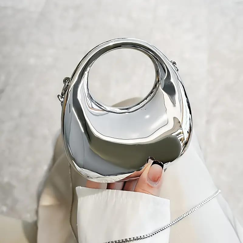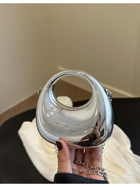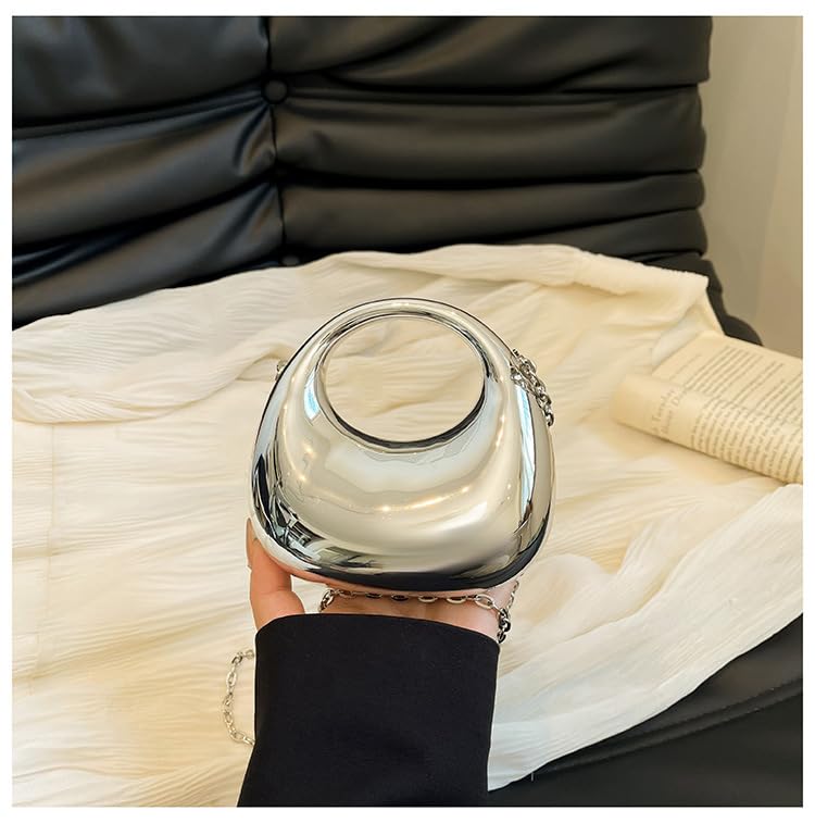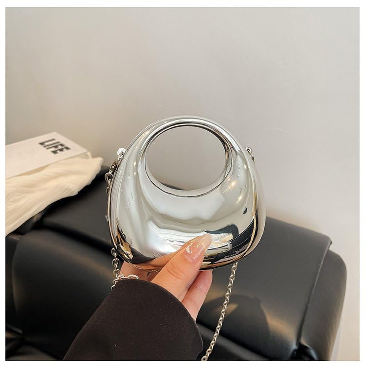 - ✨ Unique Crescent Design : Crafted with a sleek moon-shaped structure, this glossy metallic acrylic handbag is a showstopper. box clutch is crafted from high-quality acrylic with a glossy metallic finish.