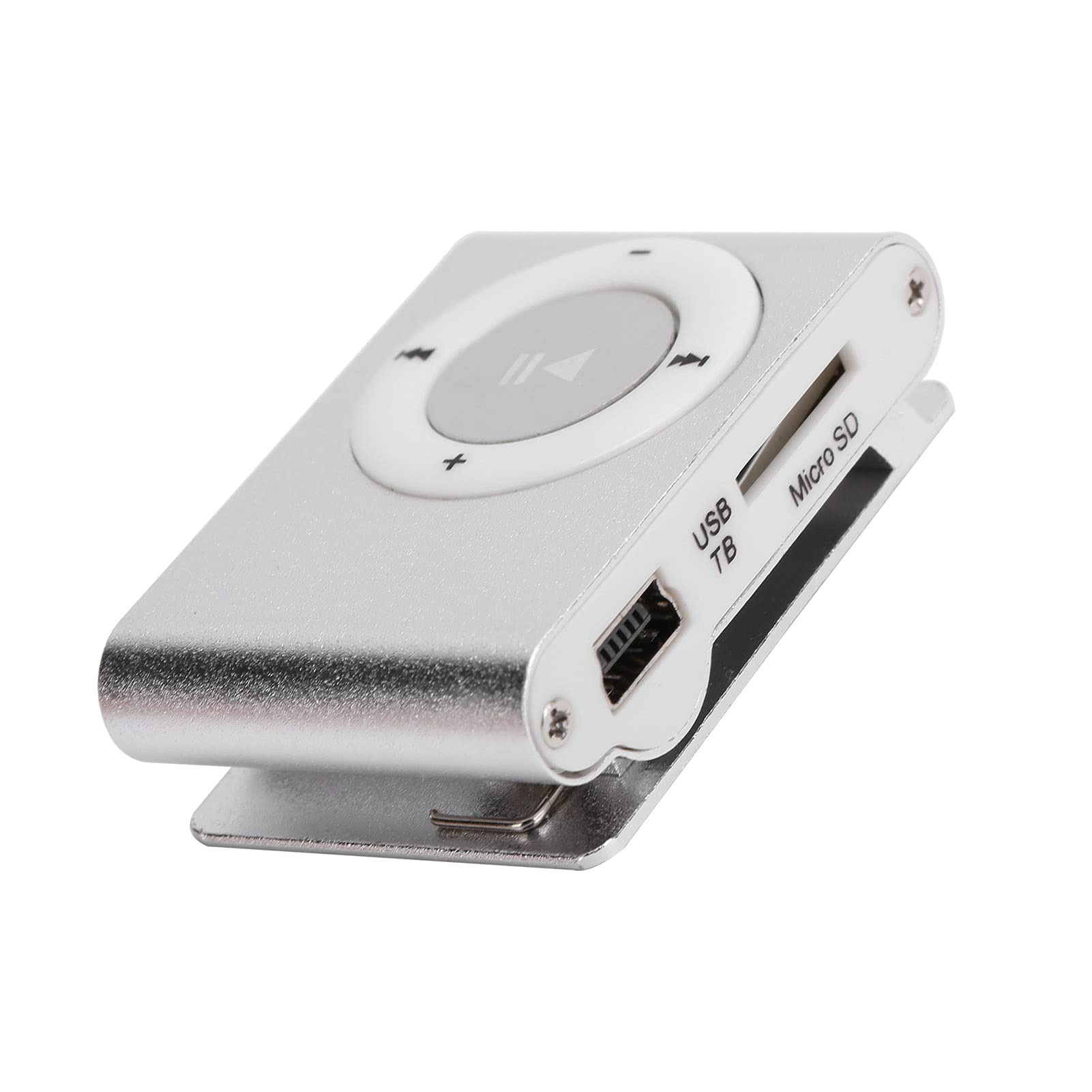Drumstone 【Summer Season with 15 Years Warranty】 MP3 Player, Back Clip USB Aluminum Alloy Music Player Support Memory Card 250mAh (Silver) Memory Card not included