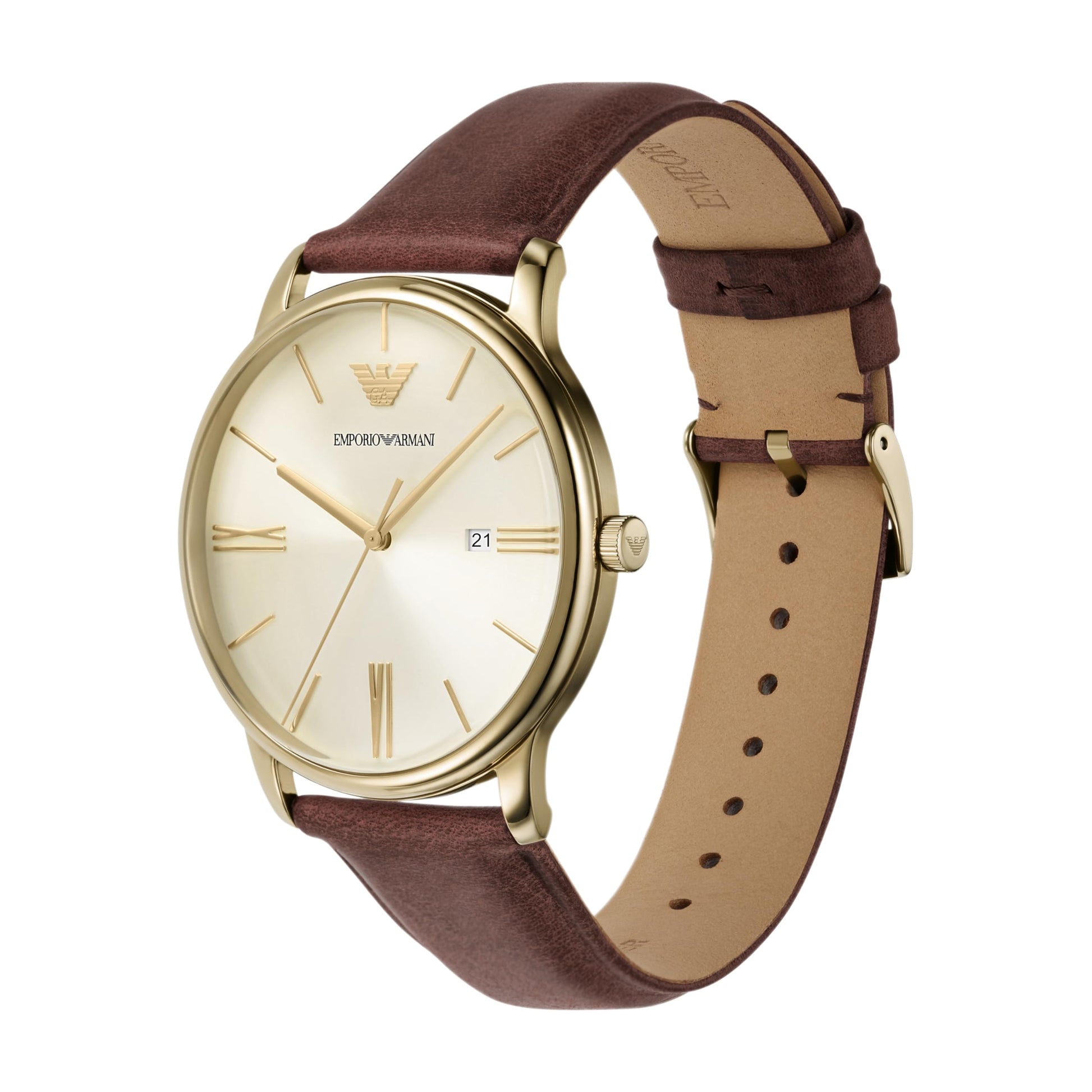 Emporio Armani Leather Analog Beige Dial Men's Watch-Ar11610, Band Color-Brown