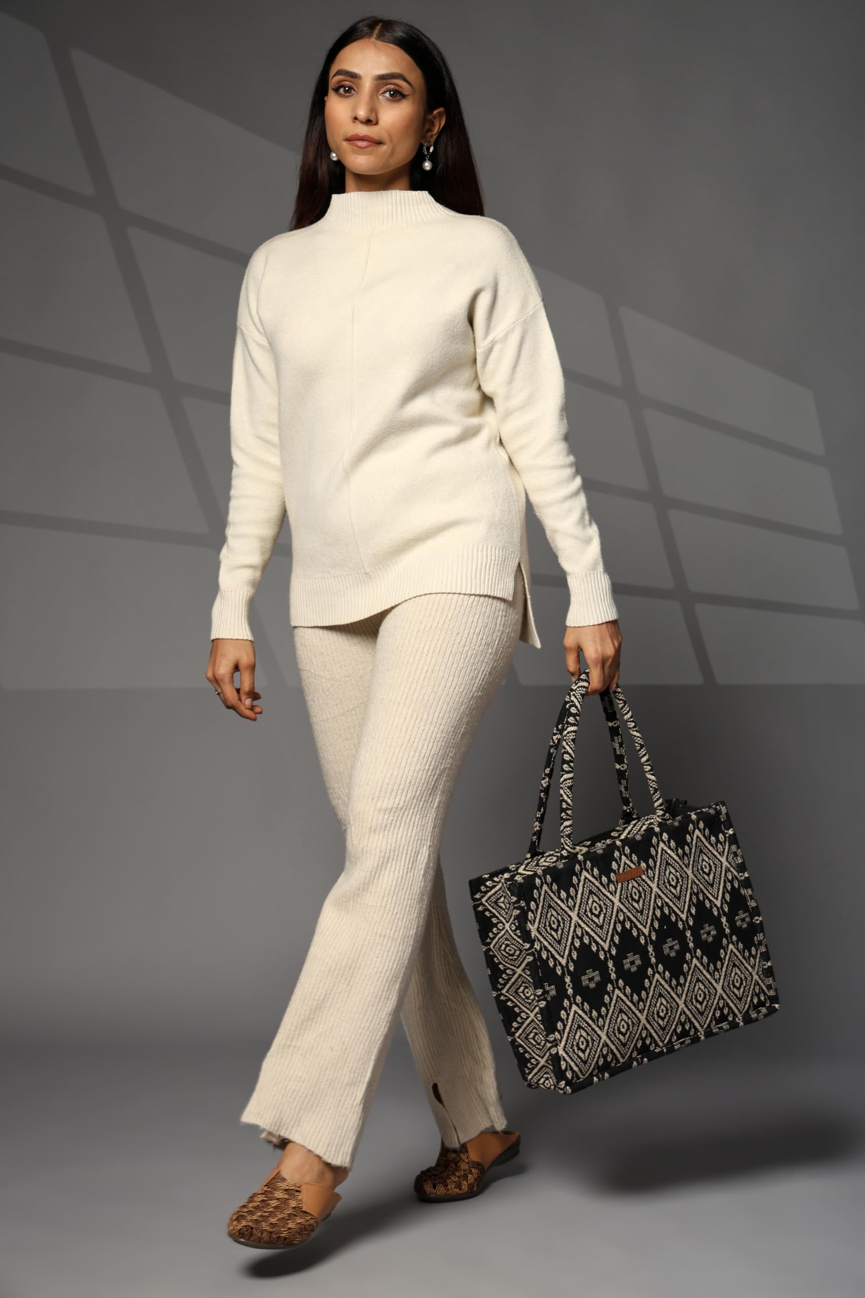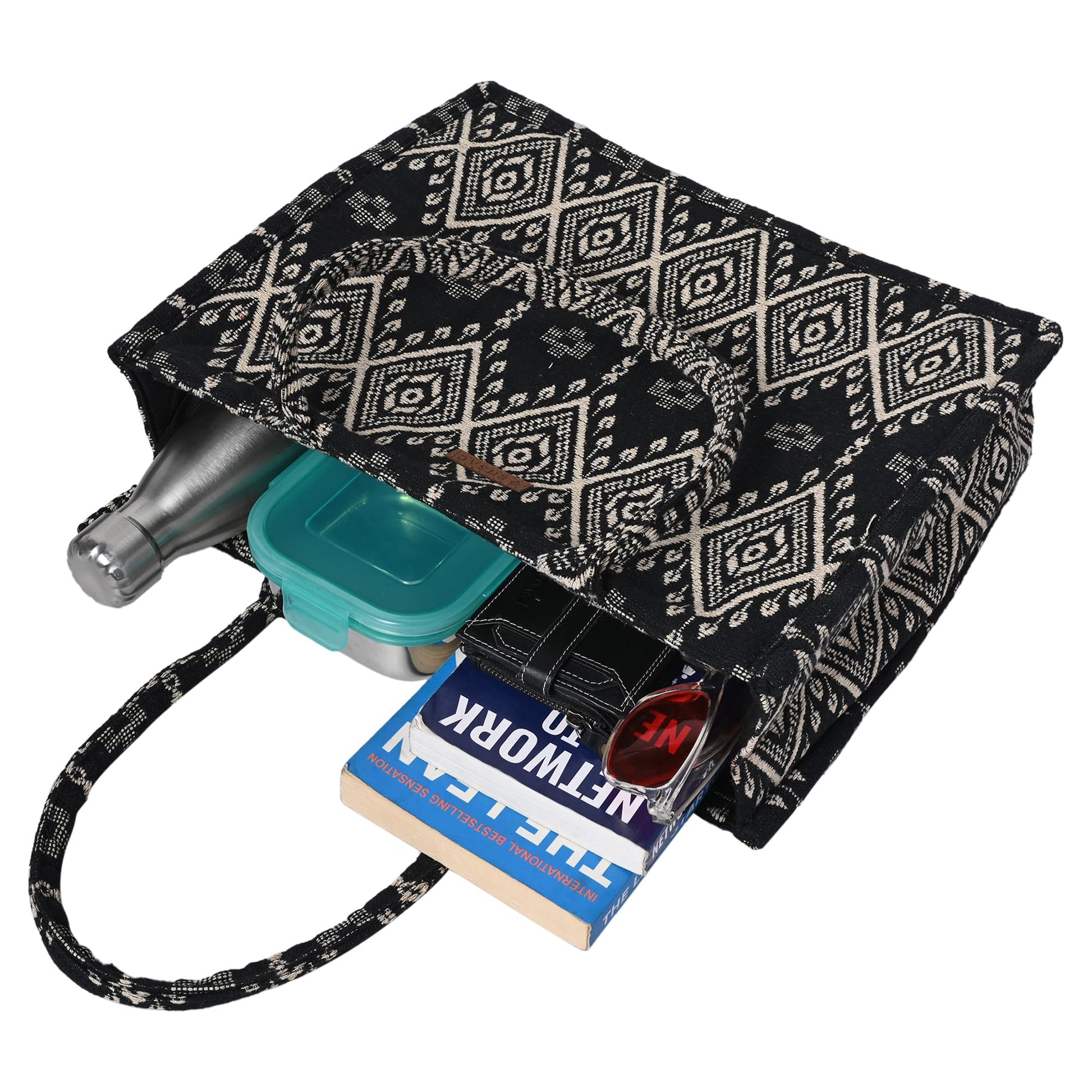 ENSAC Cotton Jacquard Tote Bag for Women, Stylish Handbag for women with Zip Closure | Fit for Office Bag, College, Travel Use | Handcrafted in India