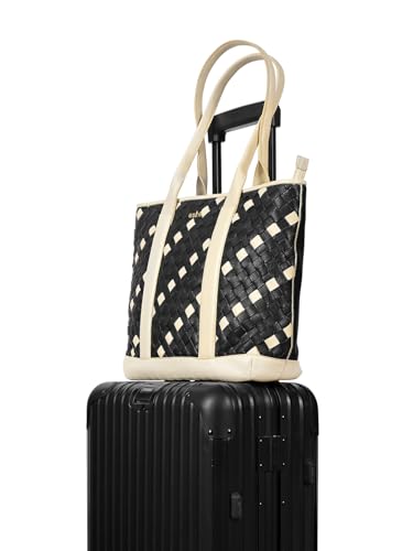 eske Paloma Genuine Leather Braided Tote Bag For Women (Vanilla Black)