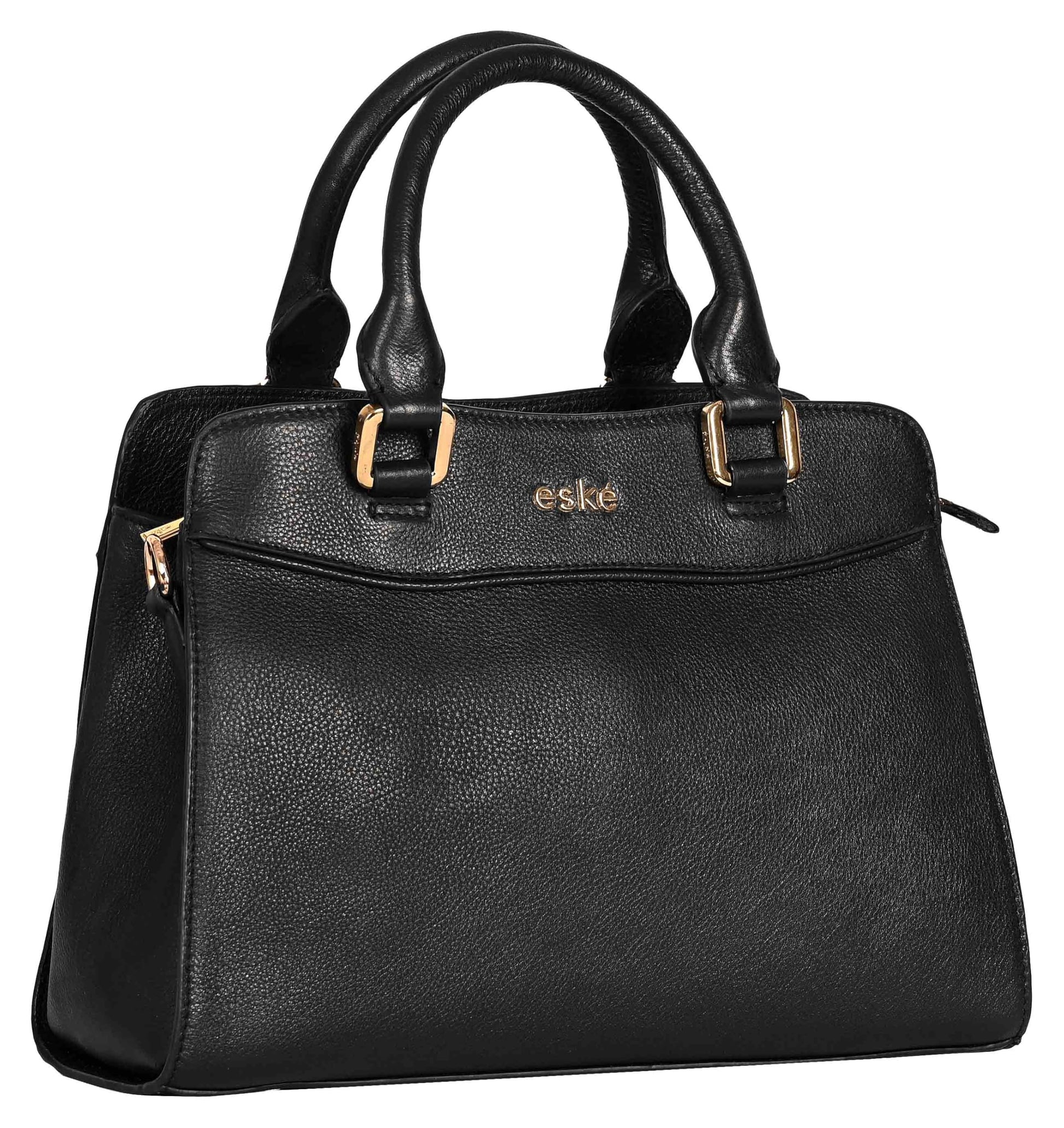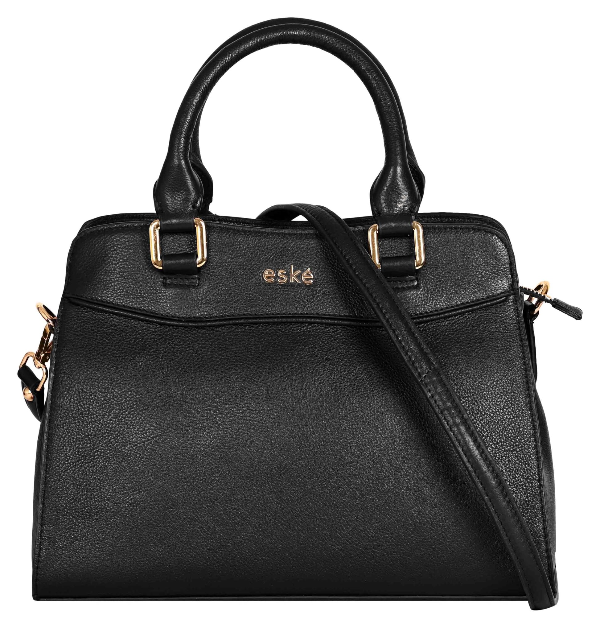 eske Rheta Genuine Leather Handbag for Women | Cosmos Leather Shoulder Bag with Dual Compartments | Detachable Strap | Zip & Slip Pockets | Elegant Office & Daily Tote (Black)